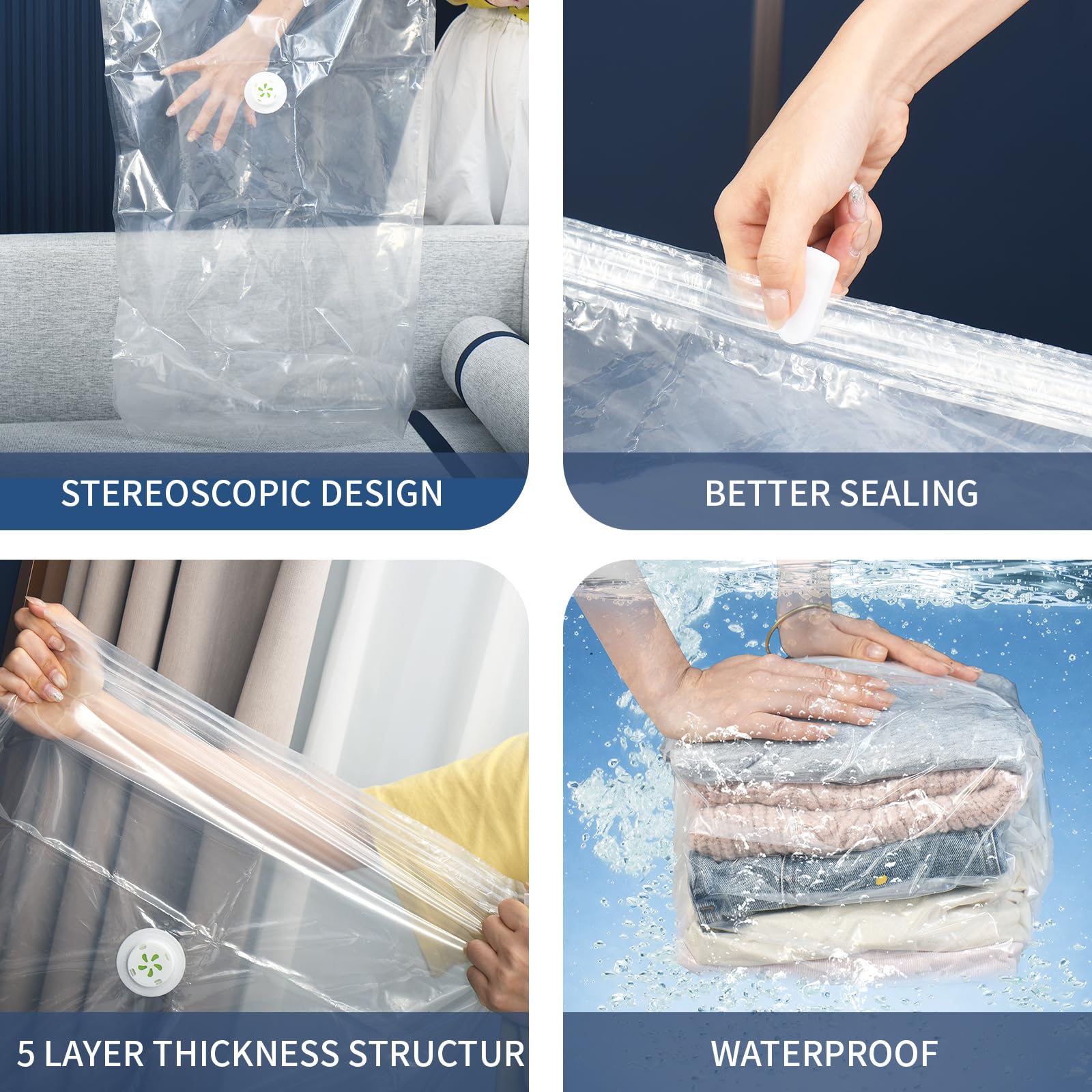 - Superior Protection:Our vacuum storage bags are fully waterproof, dustproof, and airtight, offering premium protection for clothing and bedding. Keep your items completely safe from moisture, dirt, and unexpected spills — no more worries about dampness or stains.
