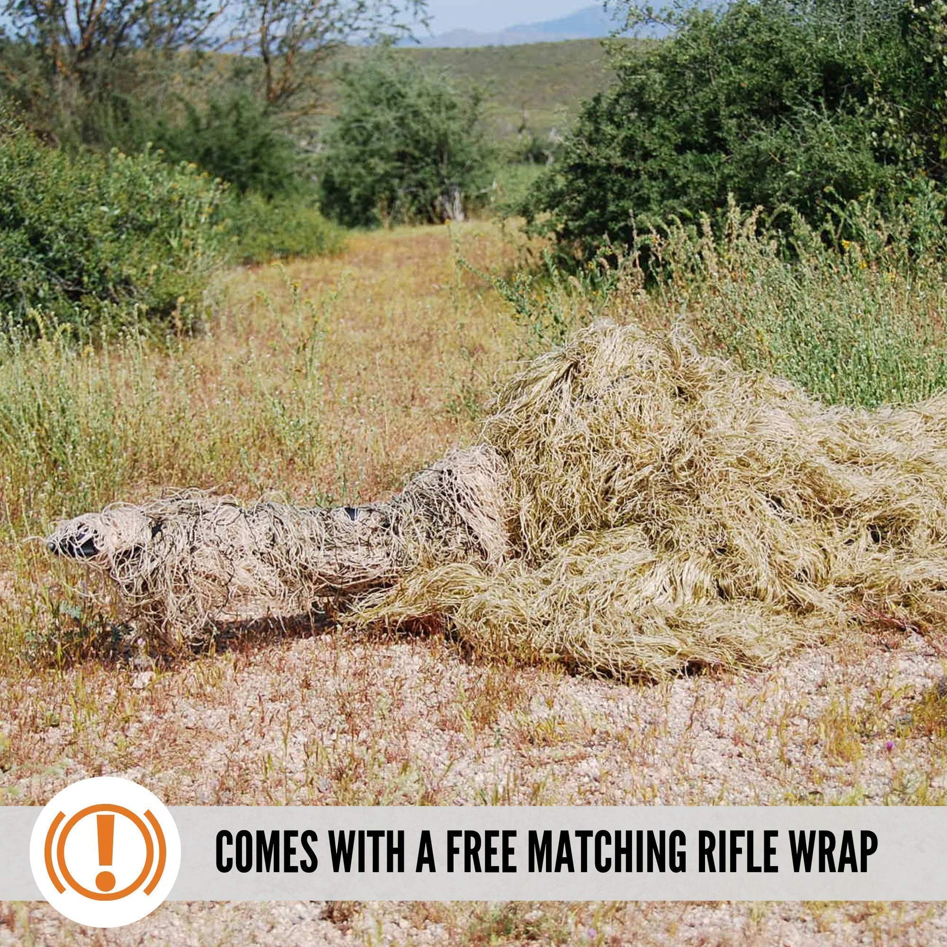 - DENSE, FULL COVERAGE: You'll be hard pressed to find a ghillie suit with this much coverage and density. The Ghost Ghillie conceals you with nearly 6 pounds of synthetic, silent, water-resistant thread. That's more cover, more stalking, and more kills in the woodland.