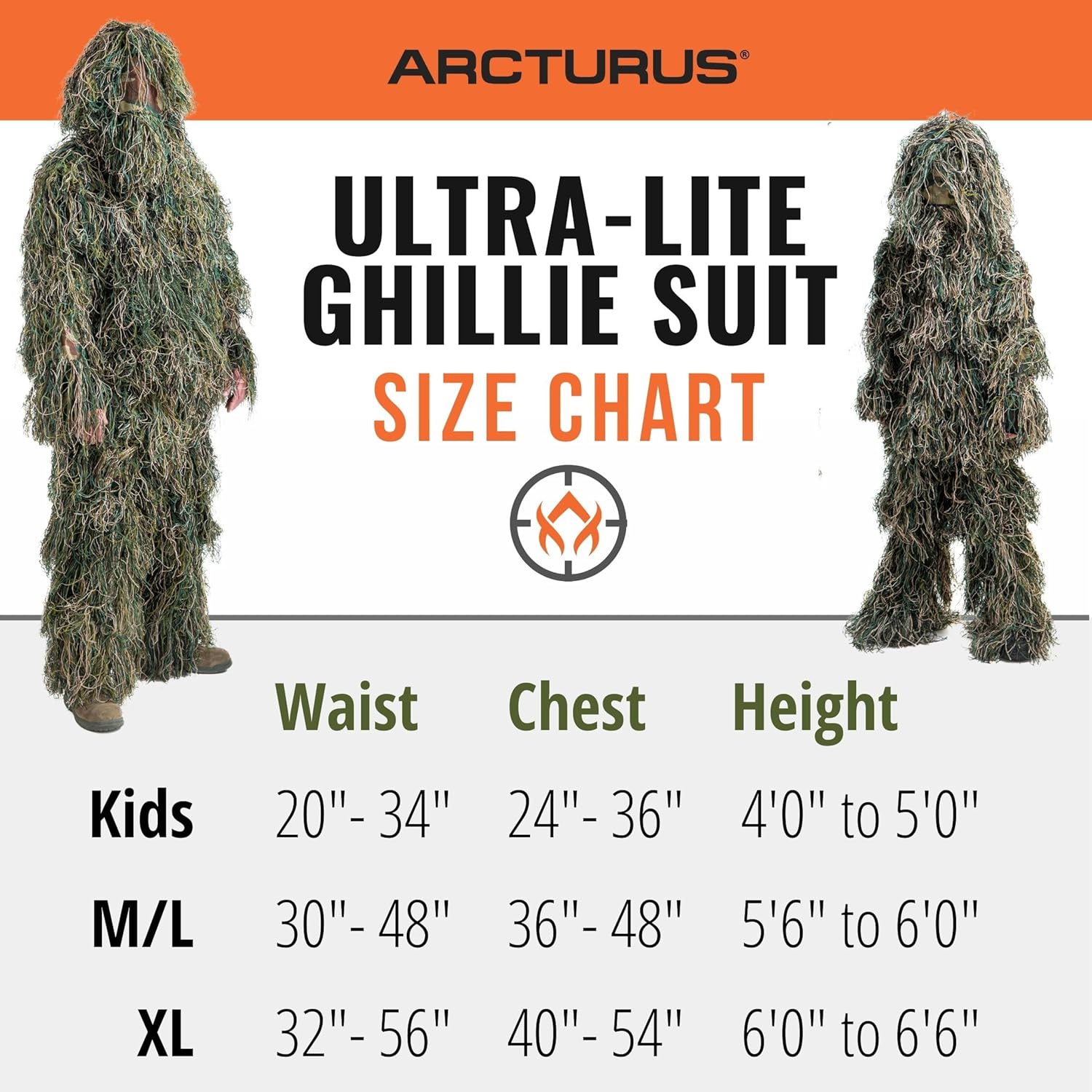 - BUILT FROM THE BEST - Based on the legendary Arcturus Ghost Ghillie suit, the Ultra-Lite takes the best tech from Arcturus and puts it in a lightweight, compact suit. What's more - we added in a can of our 3-color Combat Camo face paint for those days when you (or your kid) doesn’t feel like wearing the boonie cap.