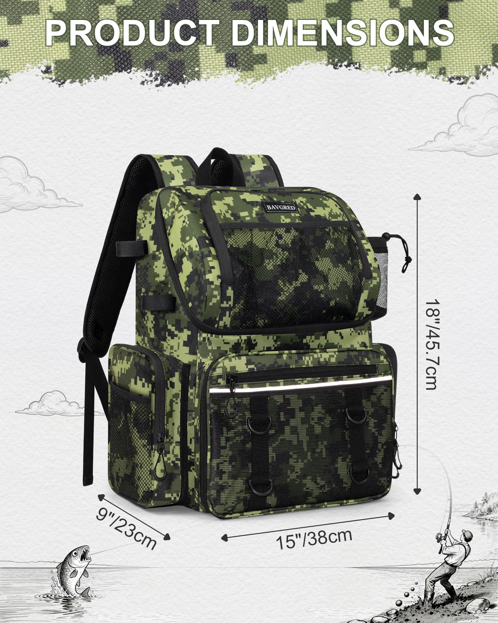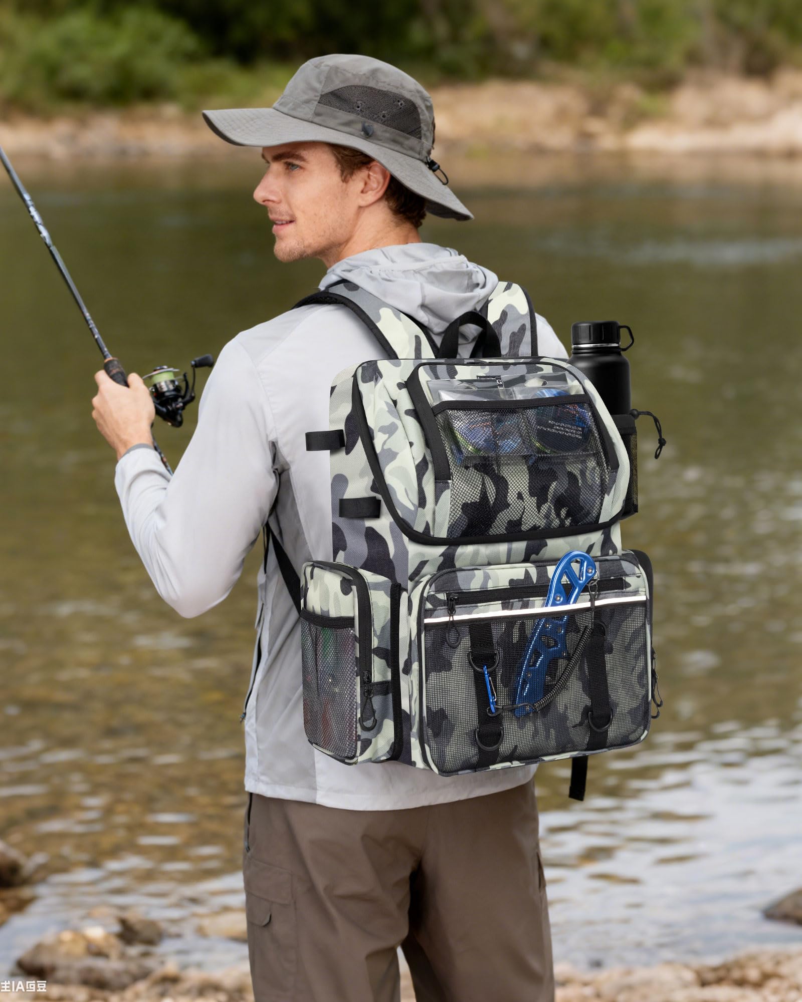 - PREMIUM MATERIALS: Crafted from high-density polyester fabric for superior tear resistance, with a waterproof coating to effectively repel moisture. The non-slip rubber feet at the bottom ensure the fishing backpack stays securely in place