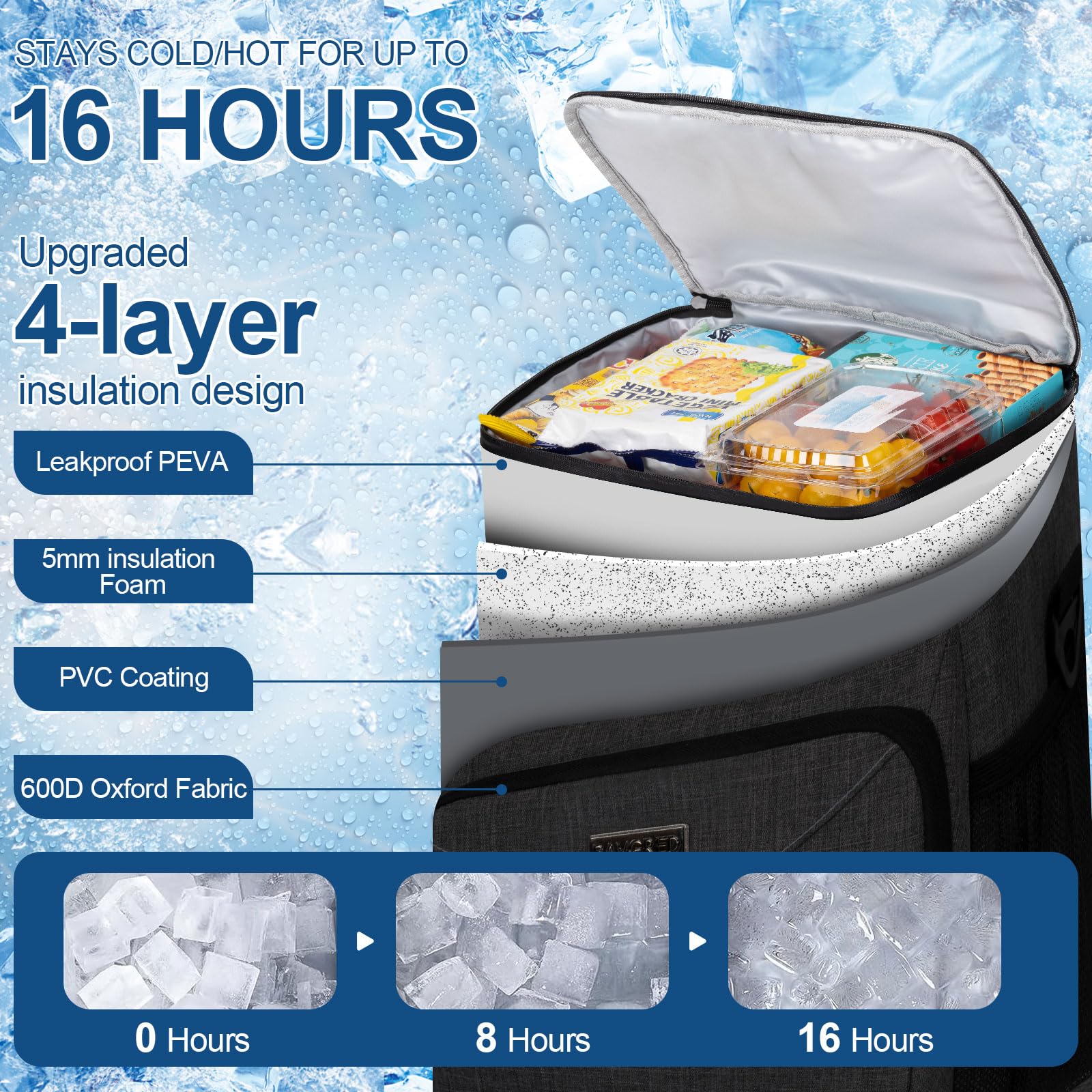 - Leak-proof & Insulated:Our insulated lunch box adopt an upgraded four layer heat insulation design, and the thickened 5mm foam can effectively lock in the temperature. The inner layer is sealed with food grade silver PEVA and uses seamless hot pressing technology to prevent leakage. Keep food and drinks fresh and cool for up to 16 hours (using ice packs), and you can enjoy cold beer, fresh fruits, or food with friends or family anytime.