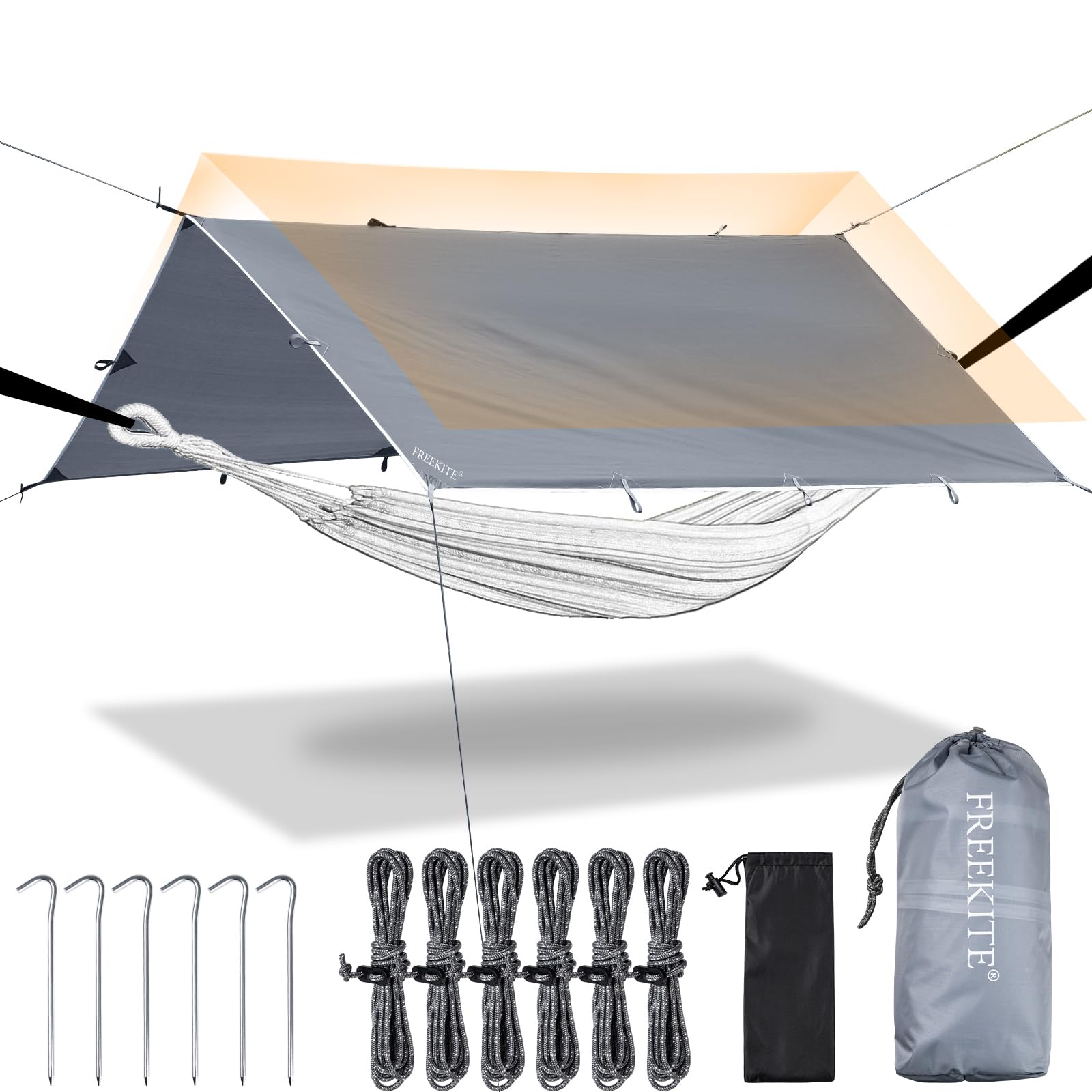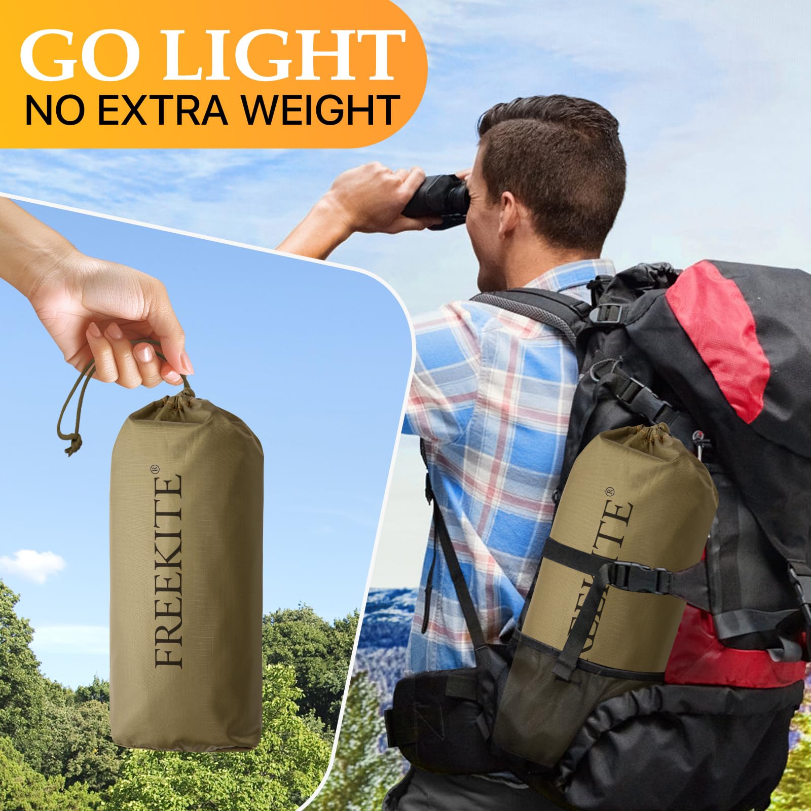 - [MULTI-OCCASIONS]:The waterproof portable FREEKITE camping tarp is suitable for any occasion,such as tactical use,military applications,shelters,hunting,fishing,backpacking,travel,hiking,work,camping,and other outdoor adventures