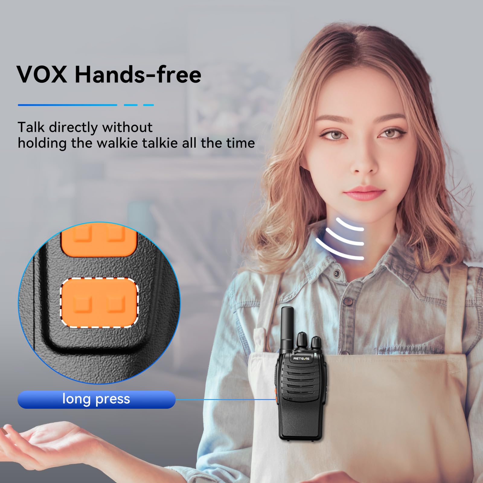 - 【Easy to Use】ready to use out of the box; and functions can be quickly accessed via shortcut keys; VOX; emergency alarm; led flashlight; save time and free the user's hands