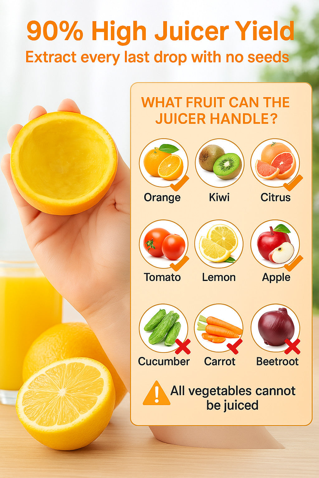 🍊 Juices Almost Anything: From citrus fruits like oranges and lemons to juicy pears and grapes, this fruit squeezer handles it all. This electric fruit squeezer combines power and portability, making it ideal for busy mornings, travel, or outdoor events.