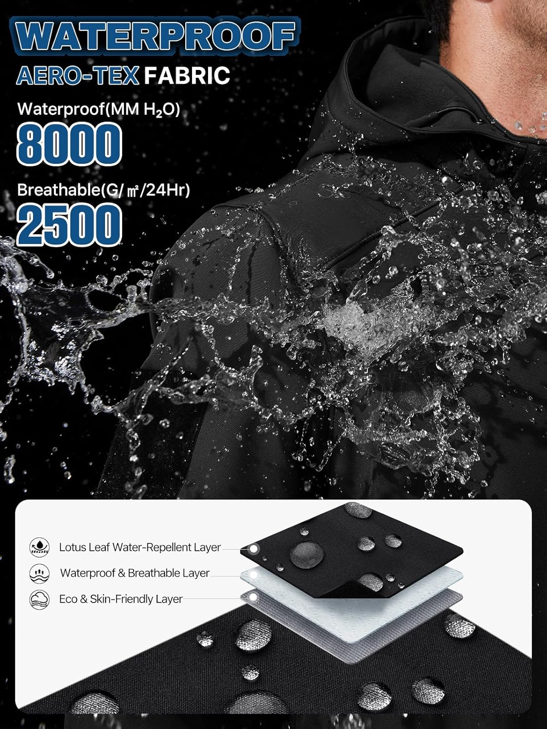 FREE SOLDIER Softshell Jackets for Men Water Resistant Fleece Lined Tactical Hunting Winter Windbreaker with Detachable Hood(Black,2XL)