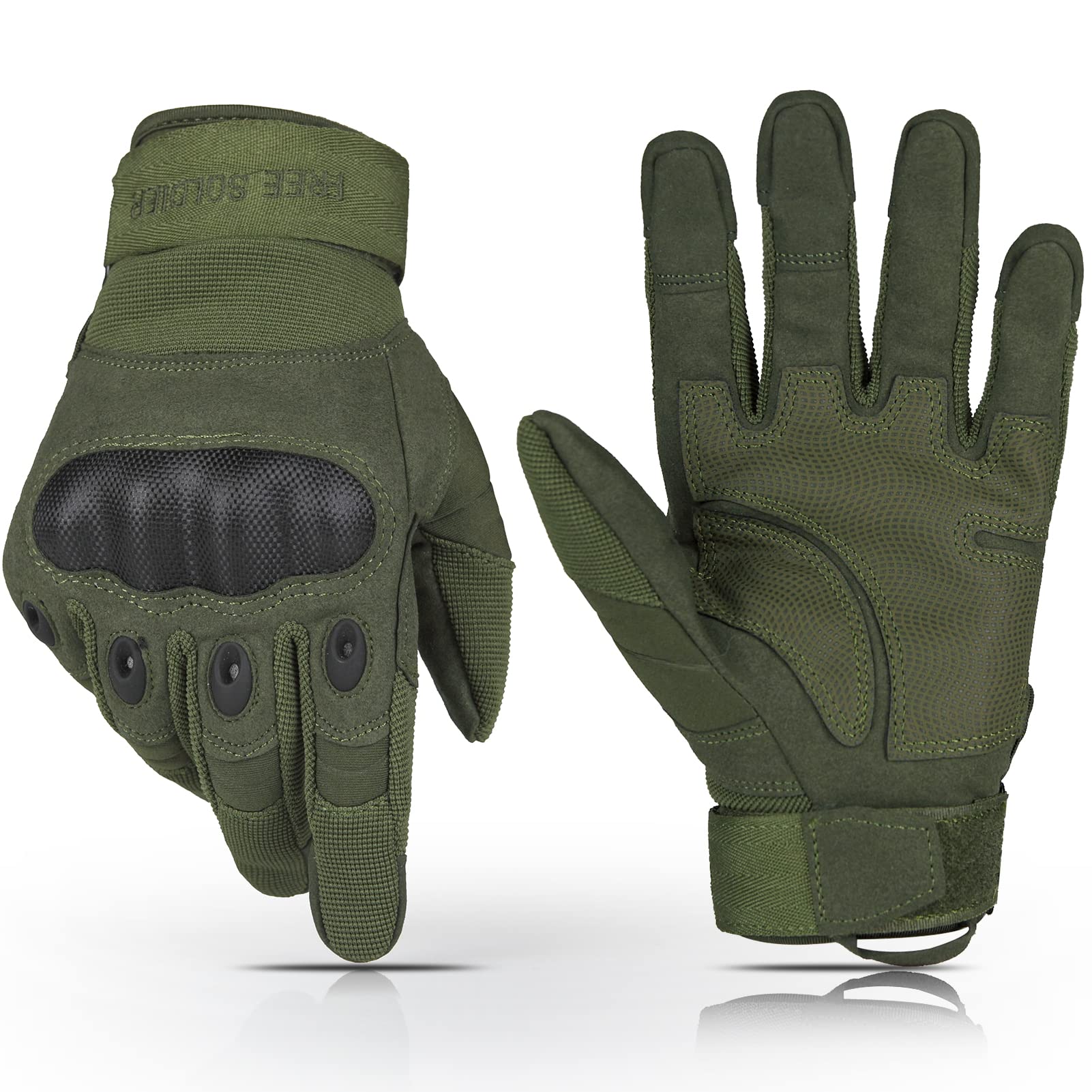 - IMPACT PROTECTION Free Soldier outdoor gloves are designed with microfiber material reinforcement, Strengthening double stitching to protect your hands from scratches and abrasions during heavy missions such as shooting, Motorcycle, cycling, camping, hunting, and other outdoor activities