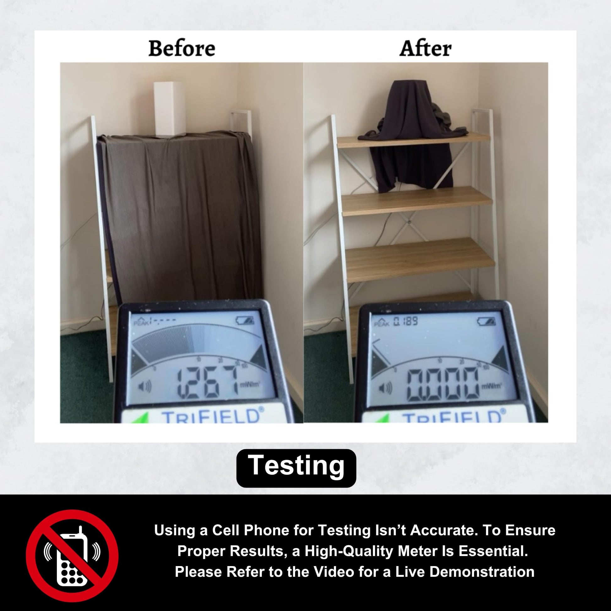 - 🧪 THIRD PARTY LAB-VERIFIED: The EcoShield fabric contains up to 20% pure silver fiber and has been evaluated across a broad 30 MHz–10 GHz frequency spectrum. Independent testing recorded values as high as 99.8 percent within the measured range, confirming the fabric’s strong electromagnetic performance qualities while remaining soft and breathable.