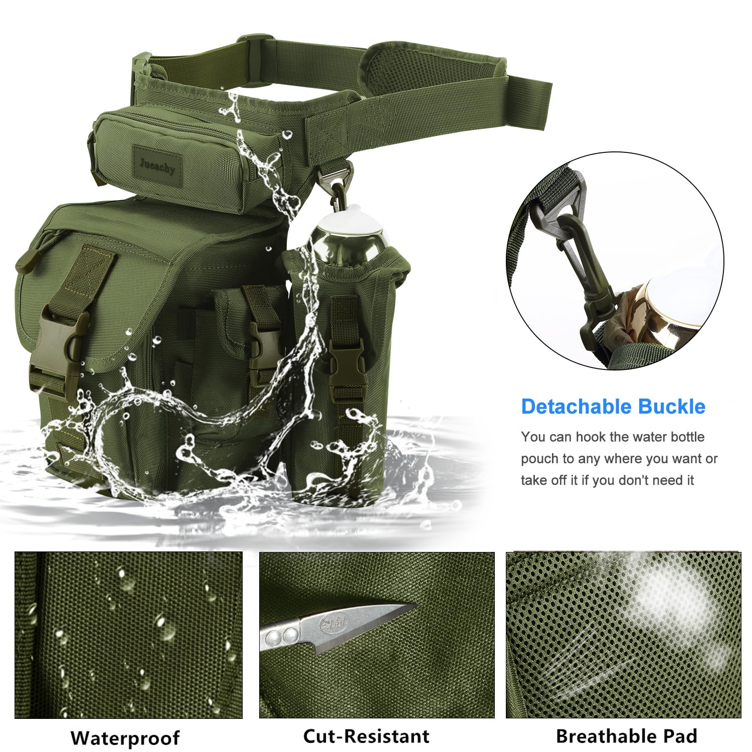 Jueachy Drop Leg Bag for Men Tactical Metal Detecting Thigh Pack with Water Bottle Pouch