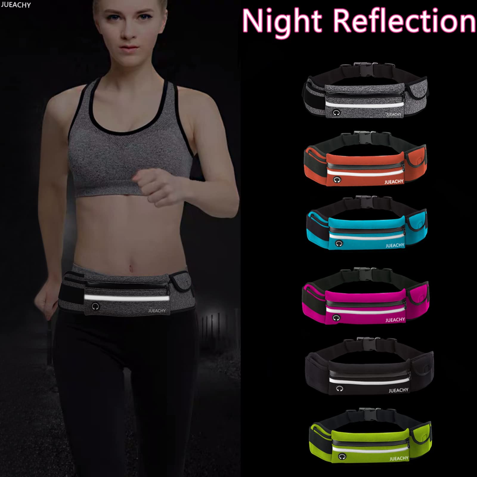 Jueachy Running Belts for Women Waterproof Fanny Pack Running Waist Pouch Phone holder Adjustable Sports Money Belt with Headphone Port