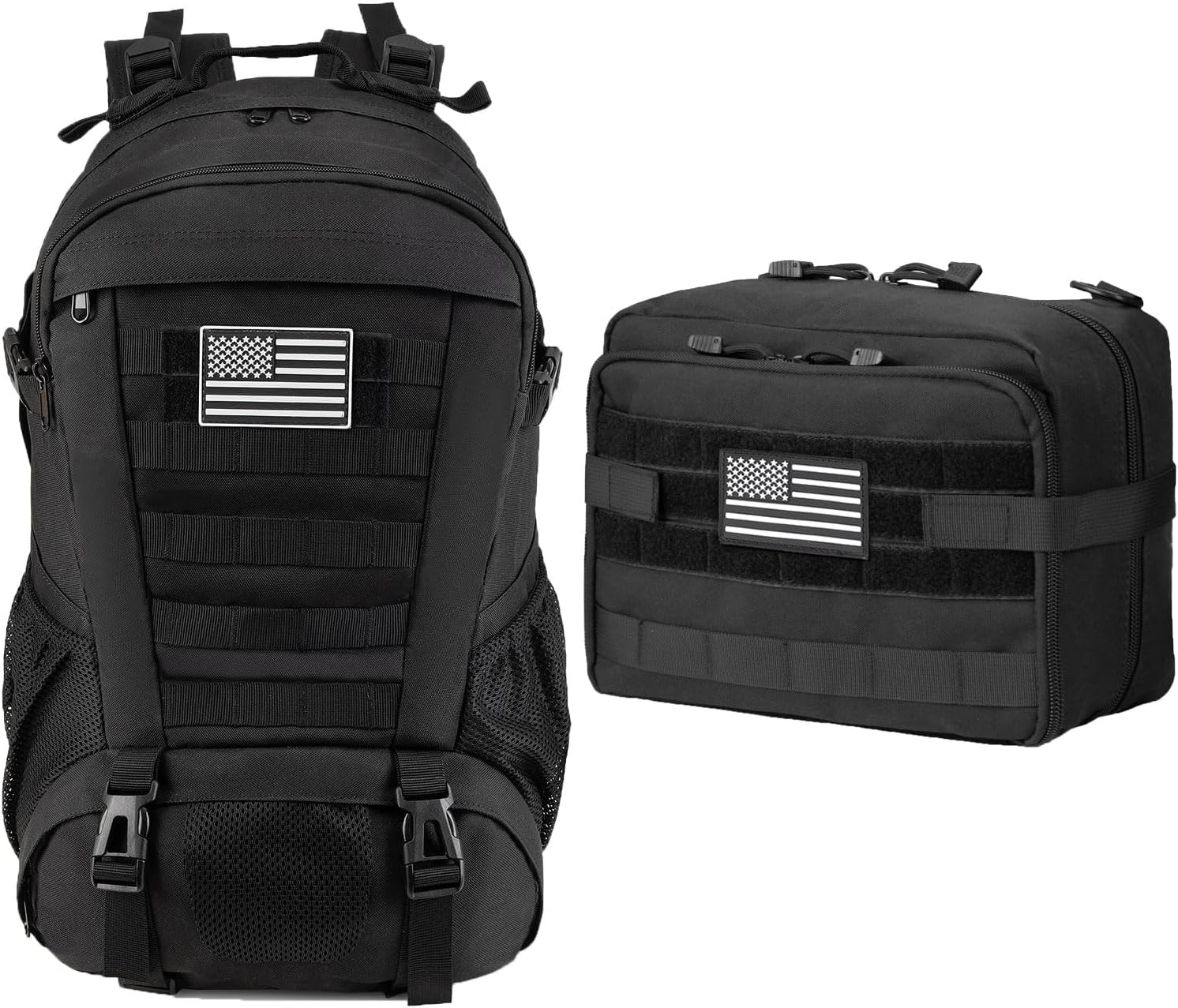 Jueachy Tactical Backpack(Black)+Tactical Molle Pouch Admin Bag(Black)