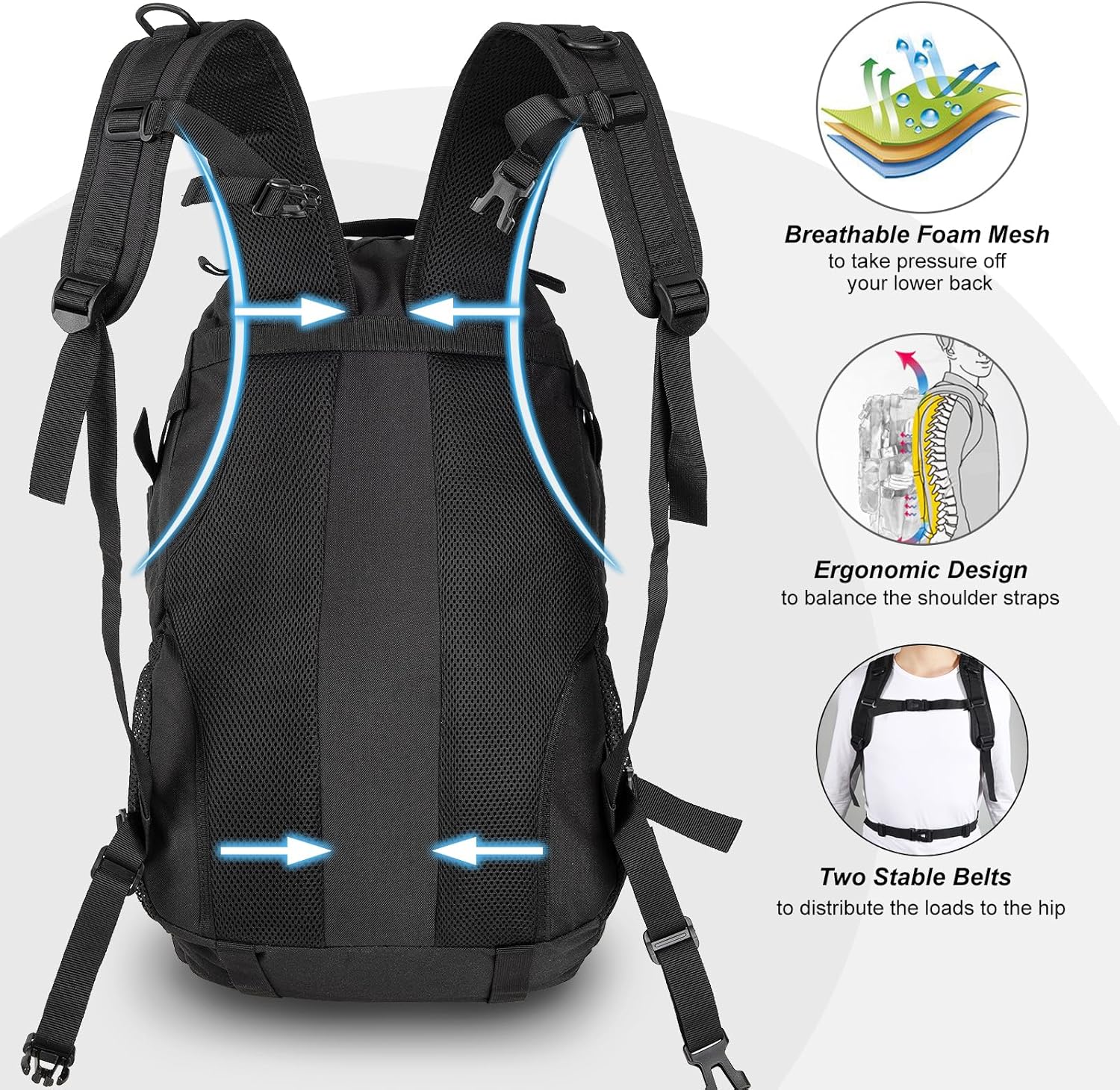 - ✅ CAPACITY: 30L capacity versatile backpack includes 2 main compartments(the bigger compartment has a laptop interval and the other main compartment has an interior zippered pocket), 1 front pocket, 1 pocket on the bottom and 1 water bottle net pouches on each side. It’s roomy and big enough for the items you want to carry.