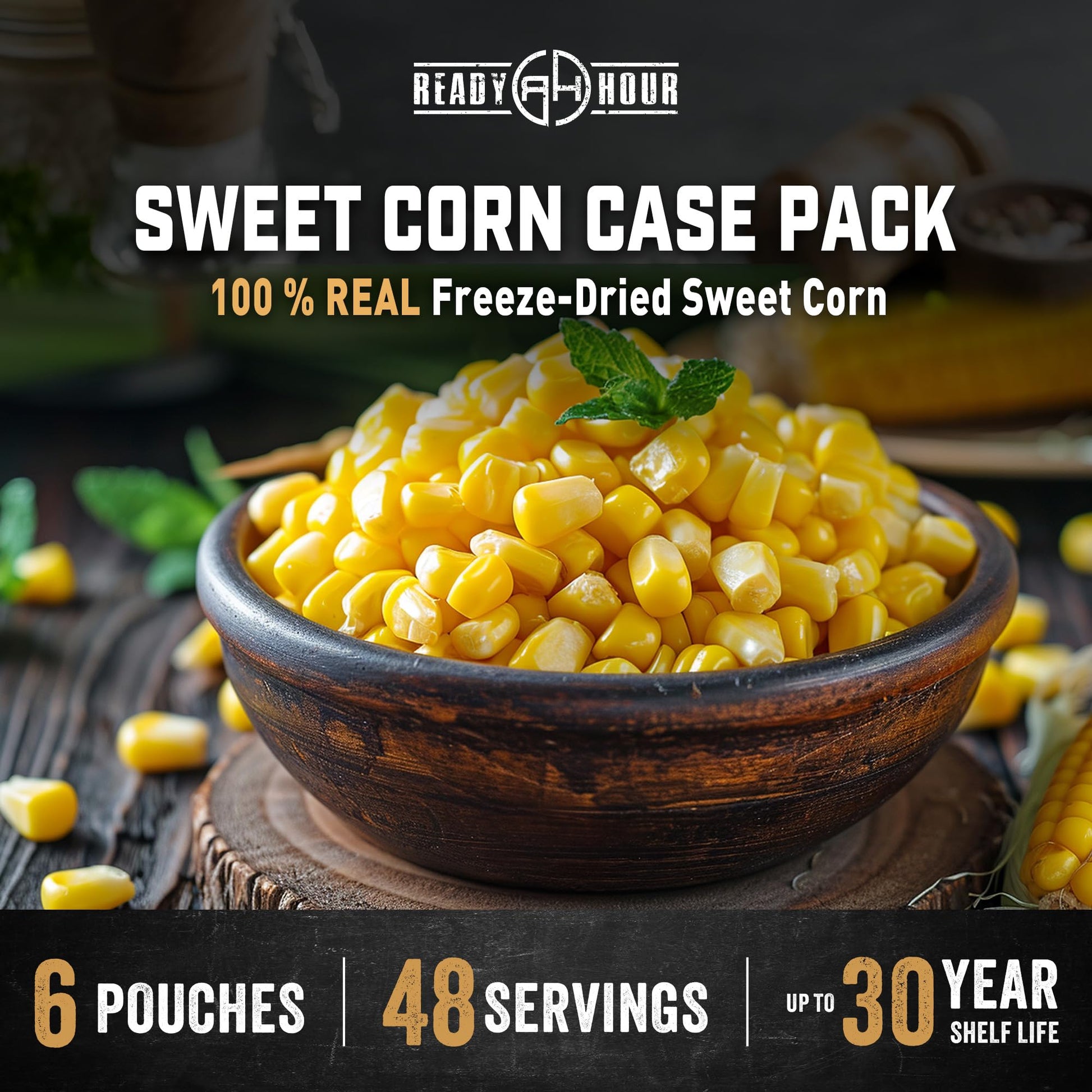 Ready Hour Freeze-Dried Corn Case Pack – Emergency Food, Long-Term Storage, Bulk Vegetables, Shelf-Stable Survival Supplies, Prepper Pantry Essential– 48 Servings (6 Pouches)