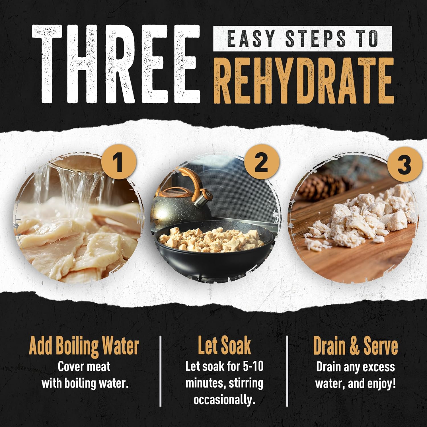 - NO COOKING NEEDED: Each pouch of meat comes already cooked, seasoned, and prepped into smaller pieces! Stir them into soups, stews, and broths straight from the pouch, or soak your meat of choice in hot water for a few minutes before using them in other ways.
