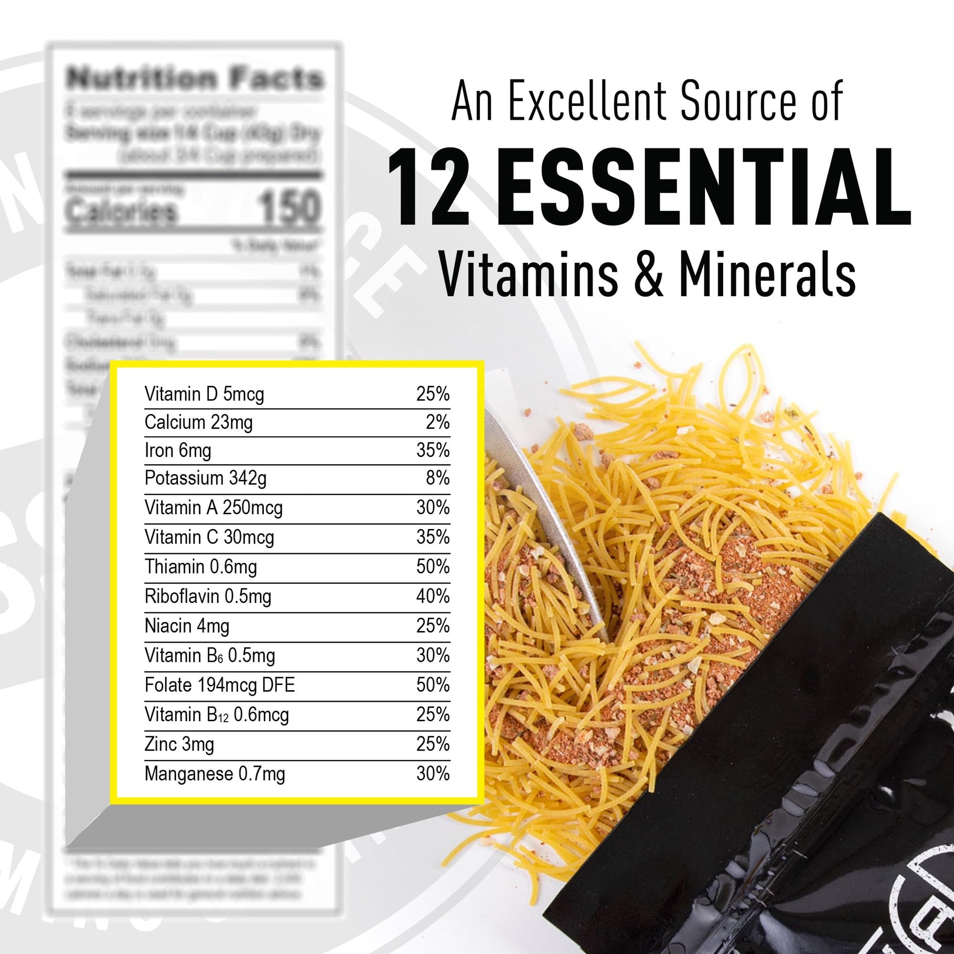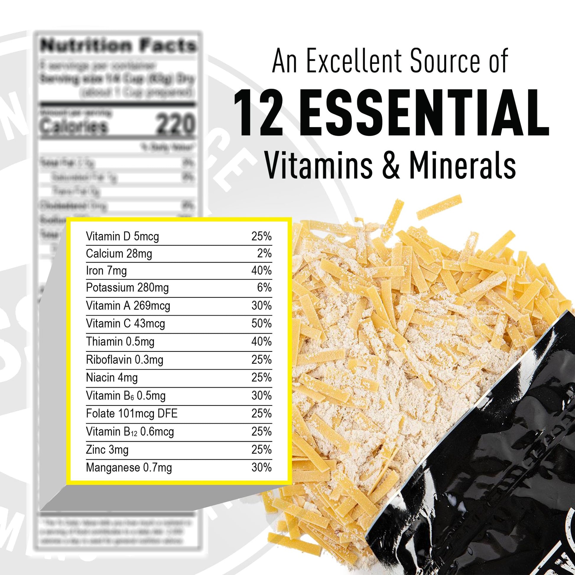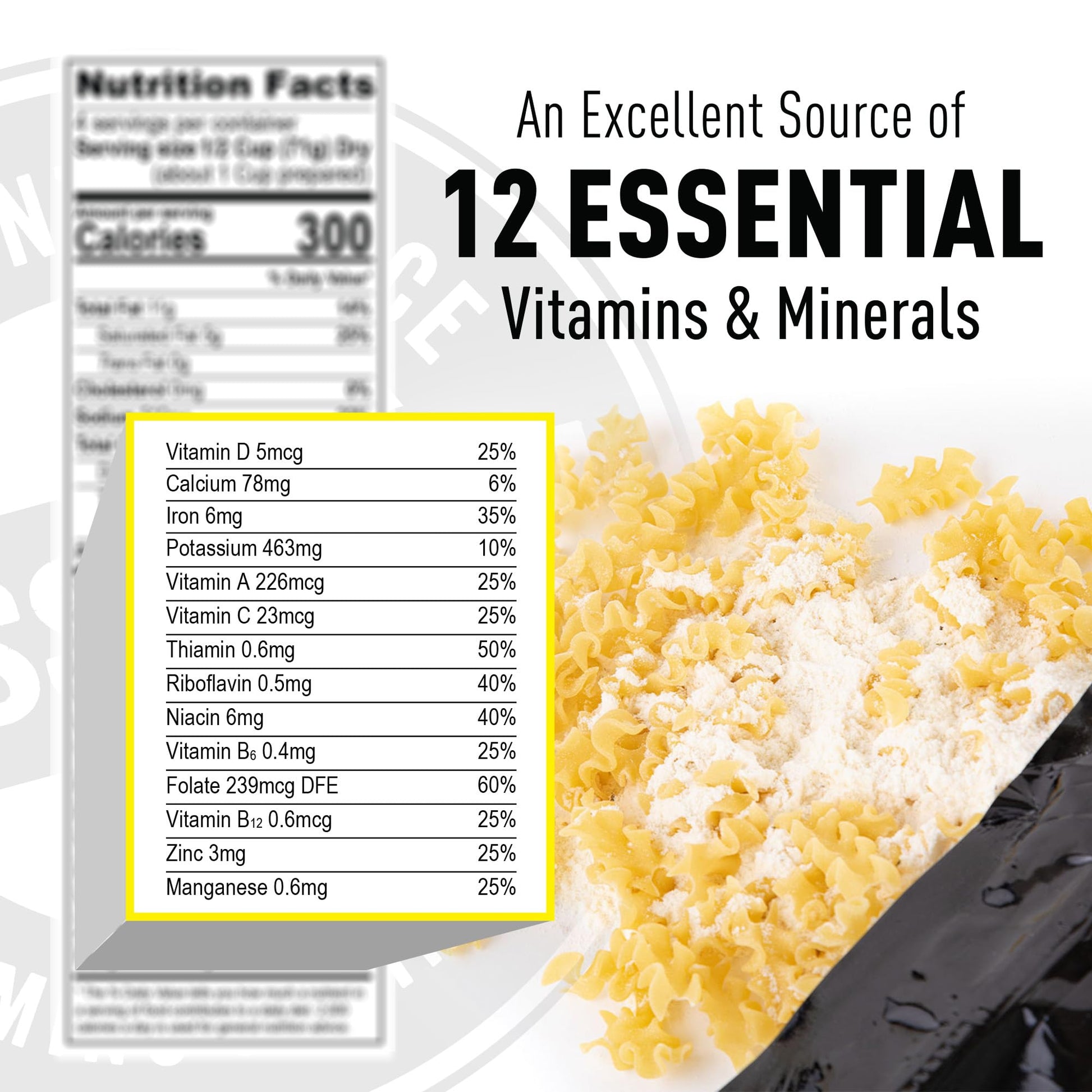 - FREEZE-DRIED & FORTIFIED: When crisis comes ‘round, you’ll love these delectable semolina elbow noodles smothered in a rich cheddar sauce made from real cheese. Plus, they’re an excellent source of 12 essential vitamins and minerals!