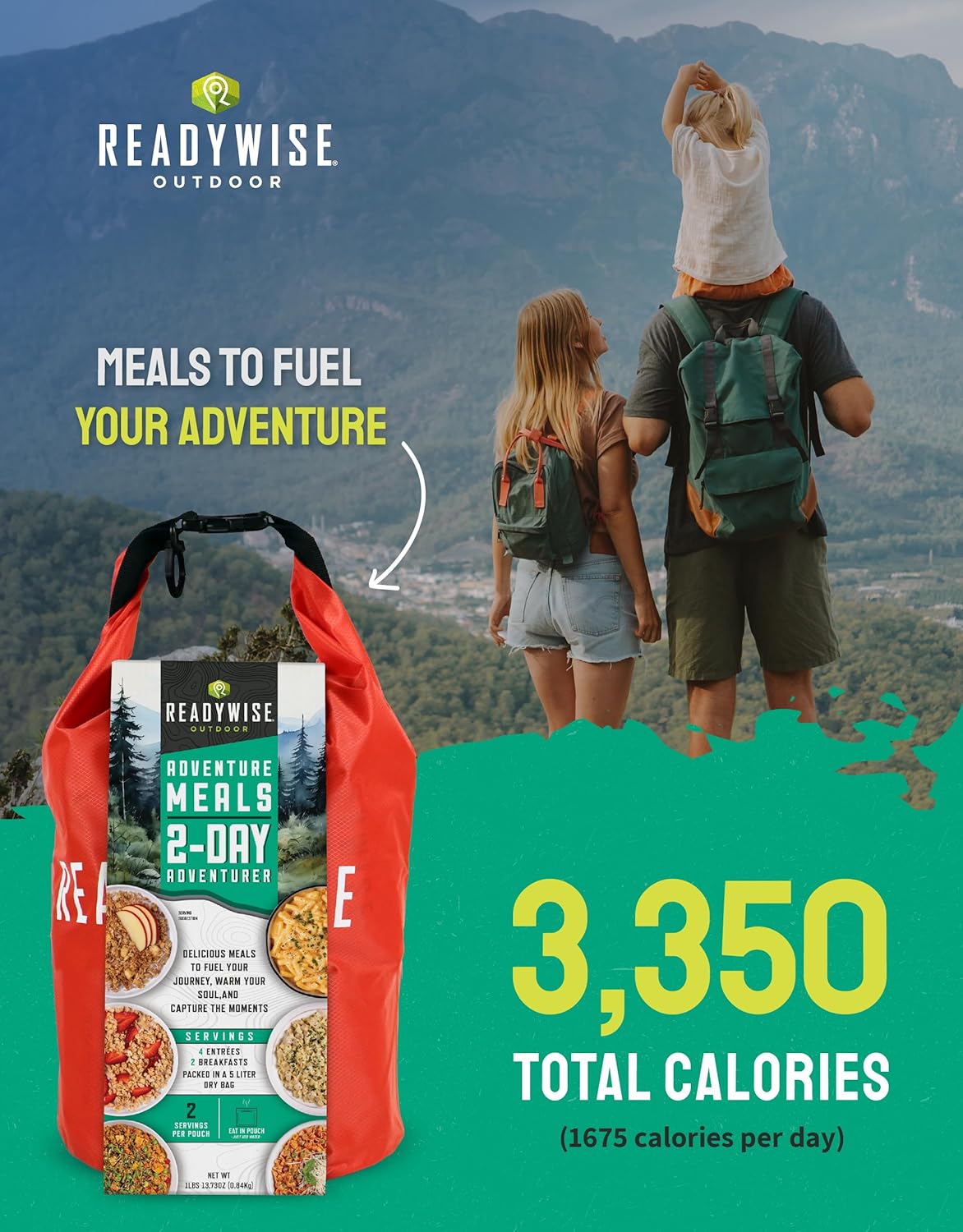 ReadyWise 2 Day Outdoor Camping Meal - 12 Servings Dry Bag, Backpacking & Camping Essentials, Dehydrated & Freeze Dried Survival Food Kit, Hurricane Supplies Bug Out Bag, Up to 15 Year Shelf Life