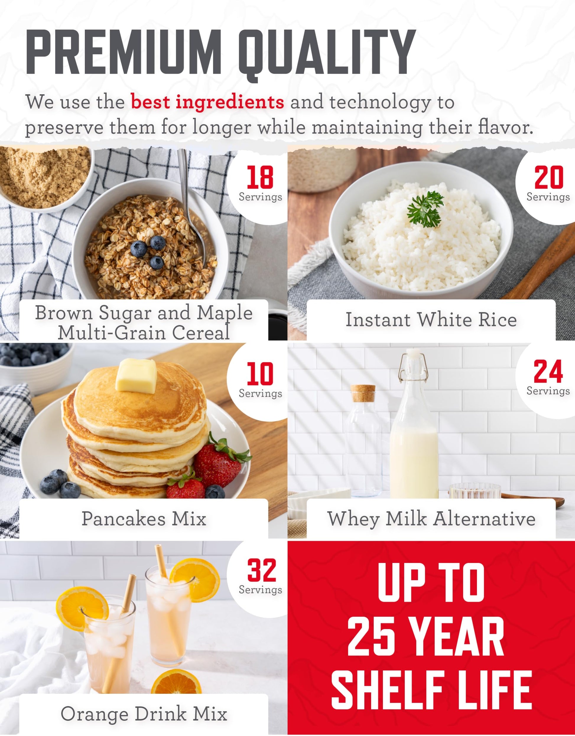 - LONG TERM RELIABILITY: With up to a 25 year shelf life, READYWISE Emergency Food Supply keeps you and your family secure during unexpected events, giving you peace of mind and ensuring you're always prepared and protected for the long haul.