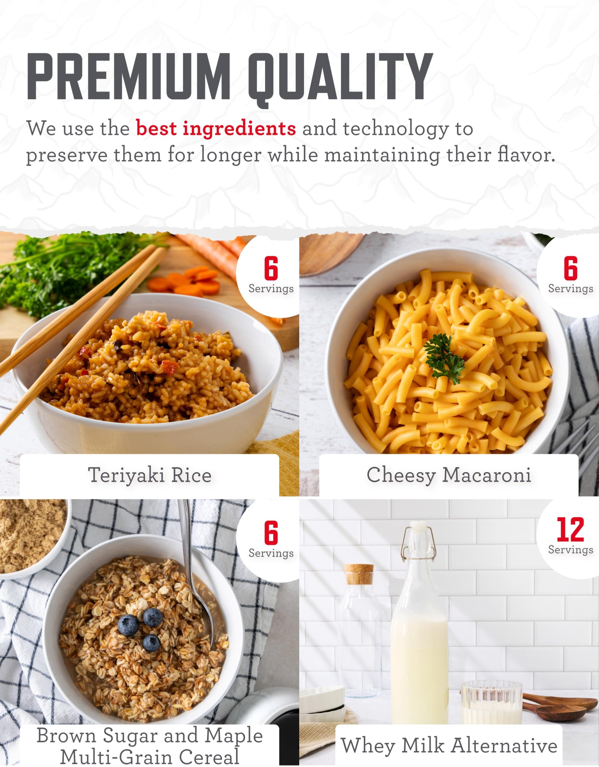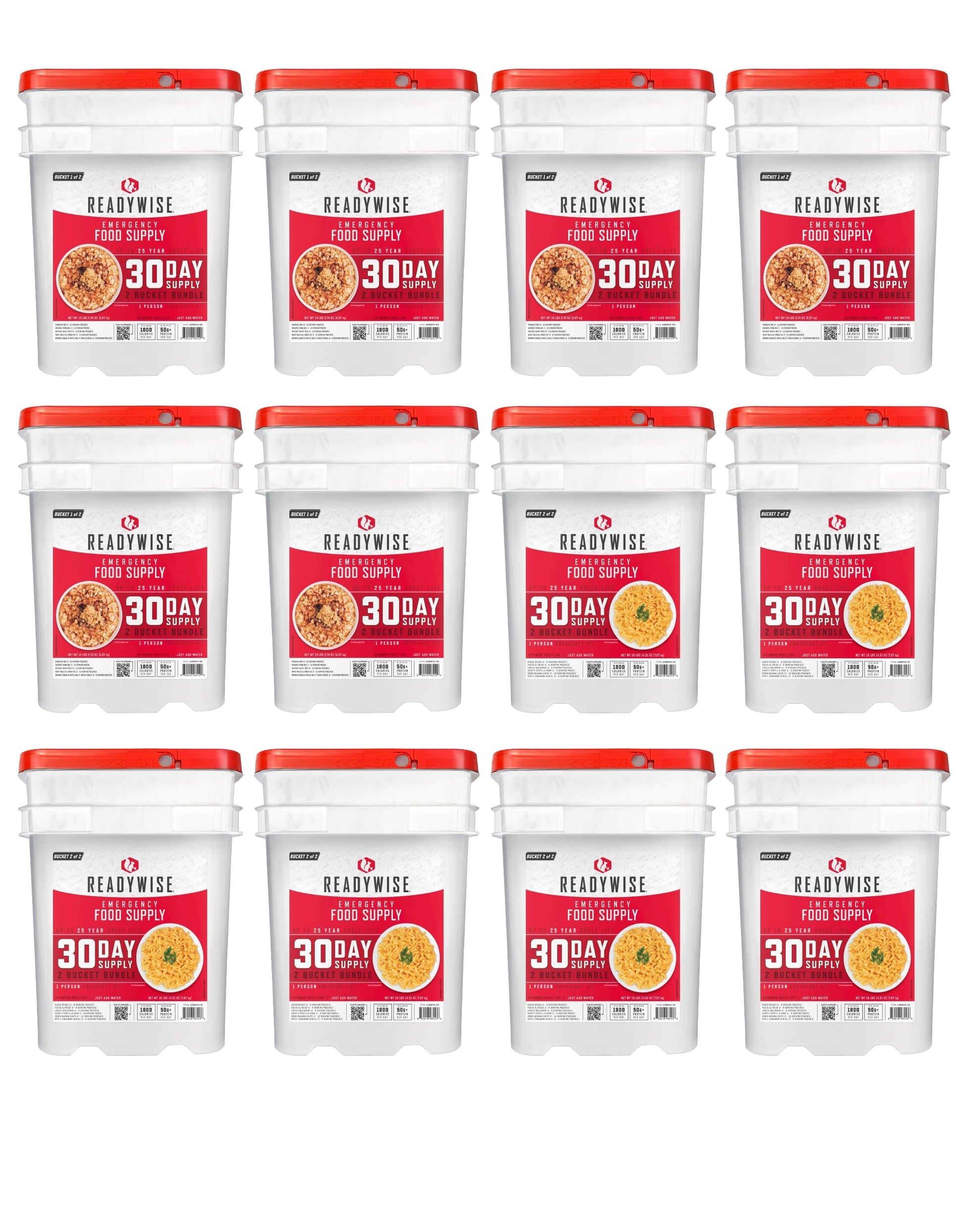 - NUTRITIOUS & YUMMY: READYWISE protein packed prepper bucket delivers bold, savory & satisfying flavor in every portion. Enjoy quick meals or to boost your emergency food kit with options like Cheesy Macaroni, Pasta Alfredo, Whey Milk Alternative & more.