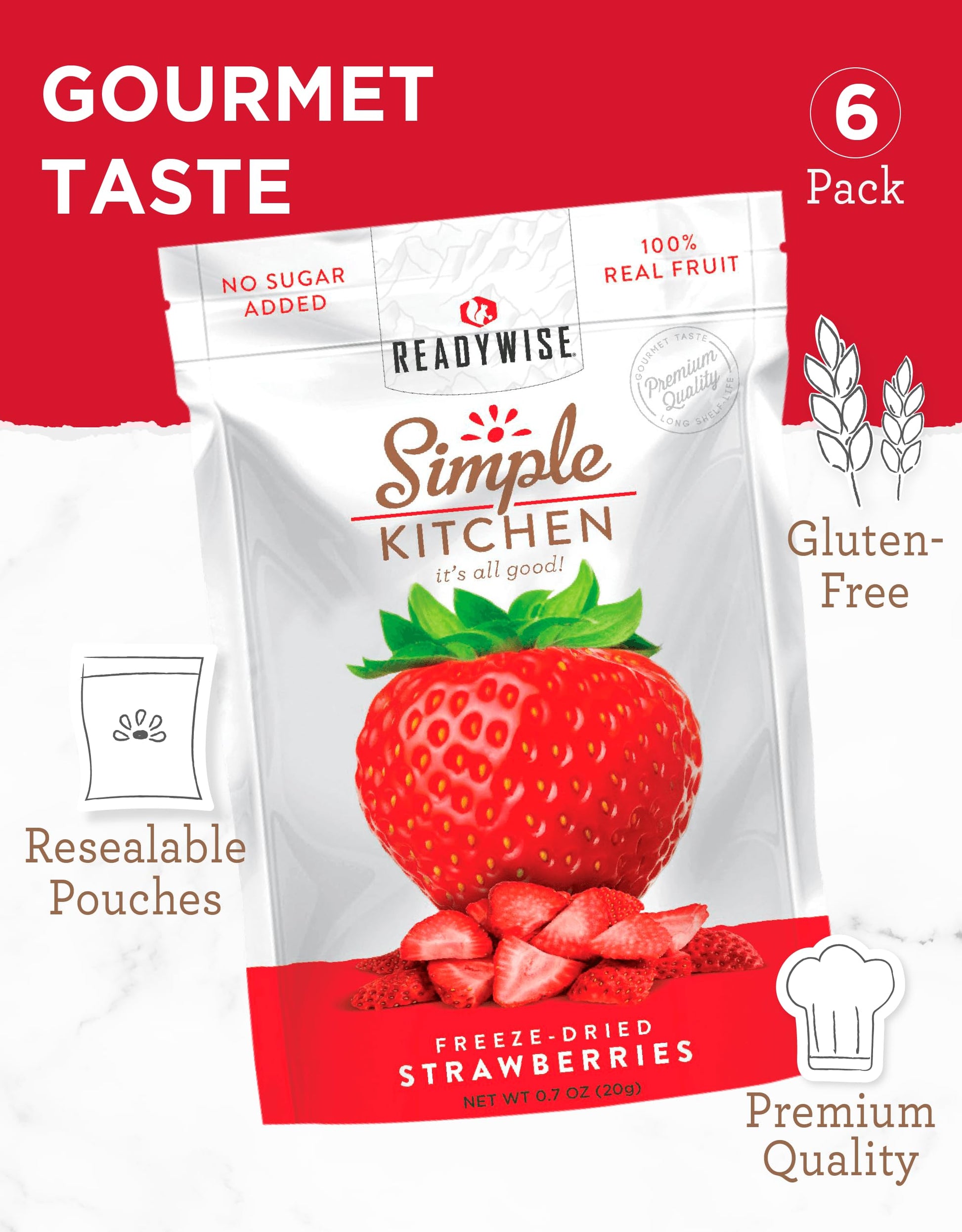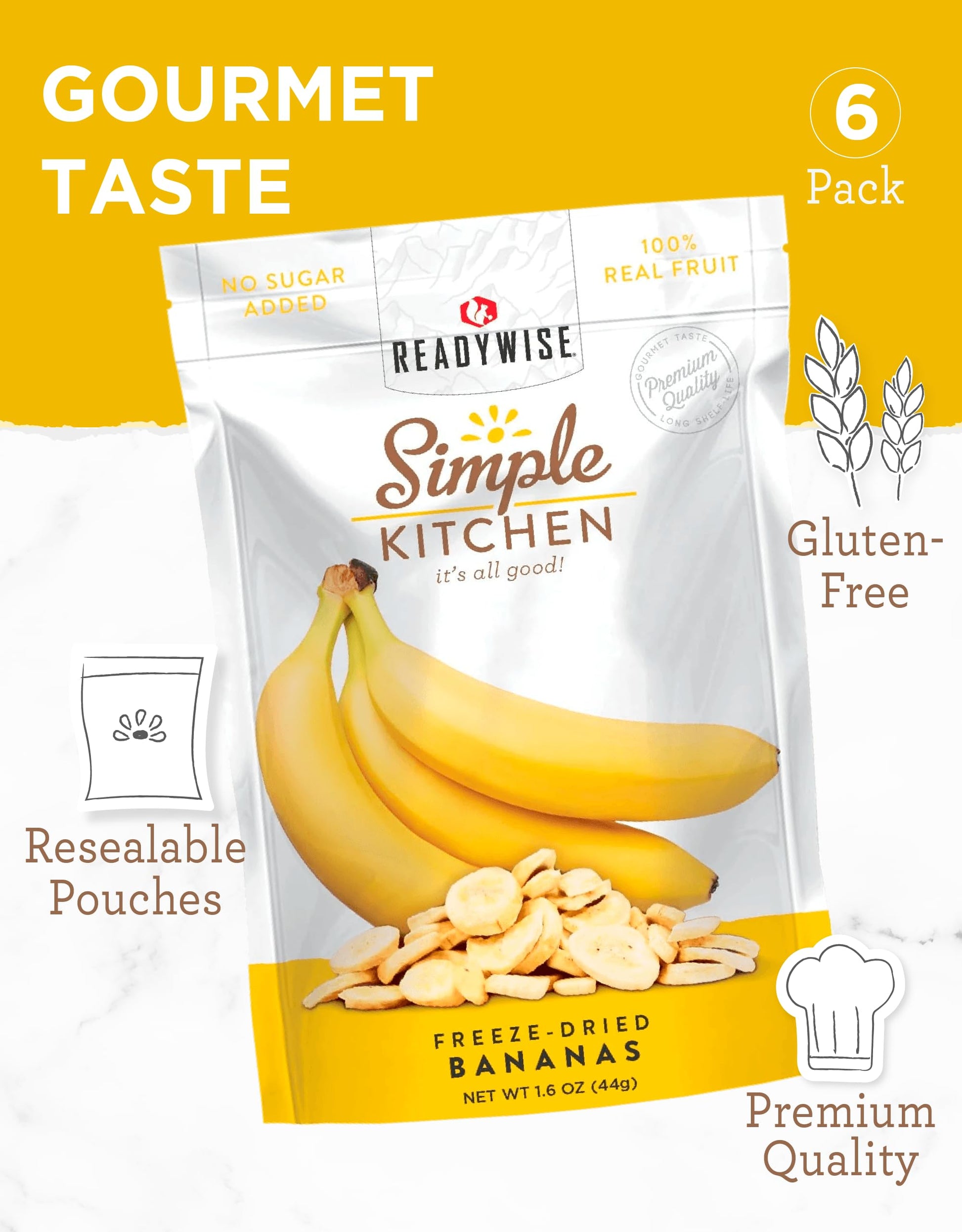 READYWISE - Simple Kitchen, Freeze-Dried Peaches, 1.16 oz, Pack of 6, Vegetarian, Gluten Free, Snacks, Peaches, Dried Fruit, Pre Workout, Healthy Snacks, Camping, Backpacking, Survival Food