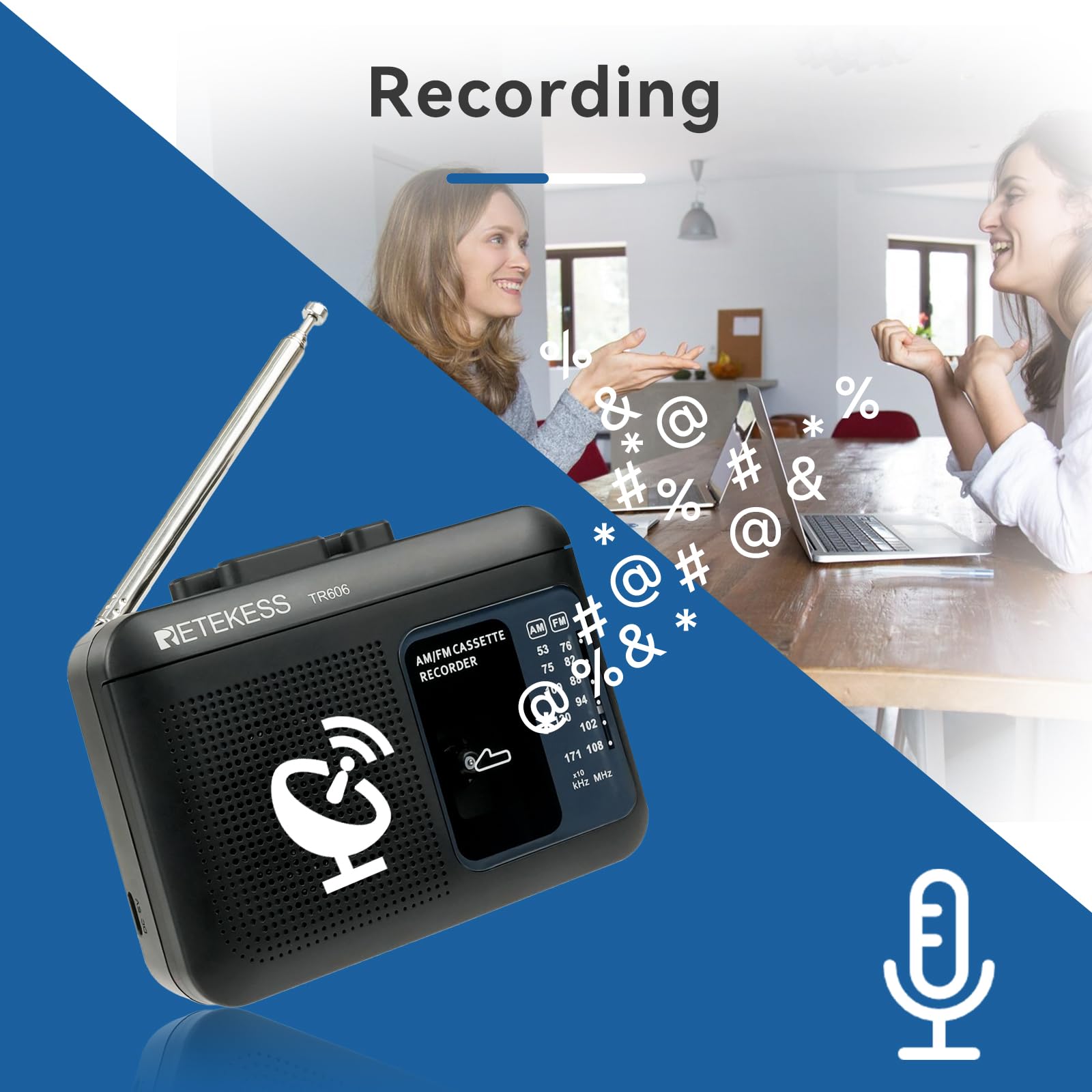 Retekess TR606 Cassette Tape Player, Cassette Player Recorder, Built-in Speaker, AUX/Microphone Jack, Support AUX Line in Record, AM FM Radio, Powered by DC or AA Battery (White)