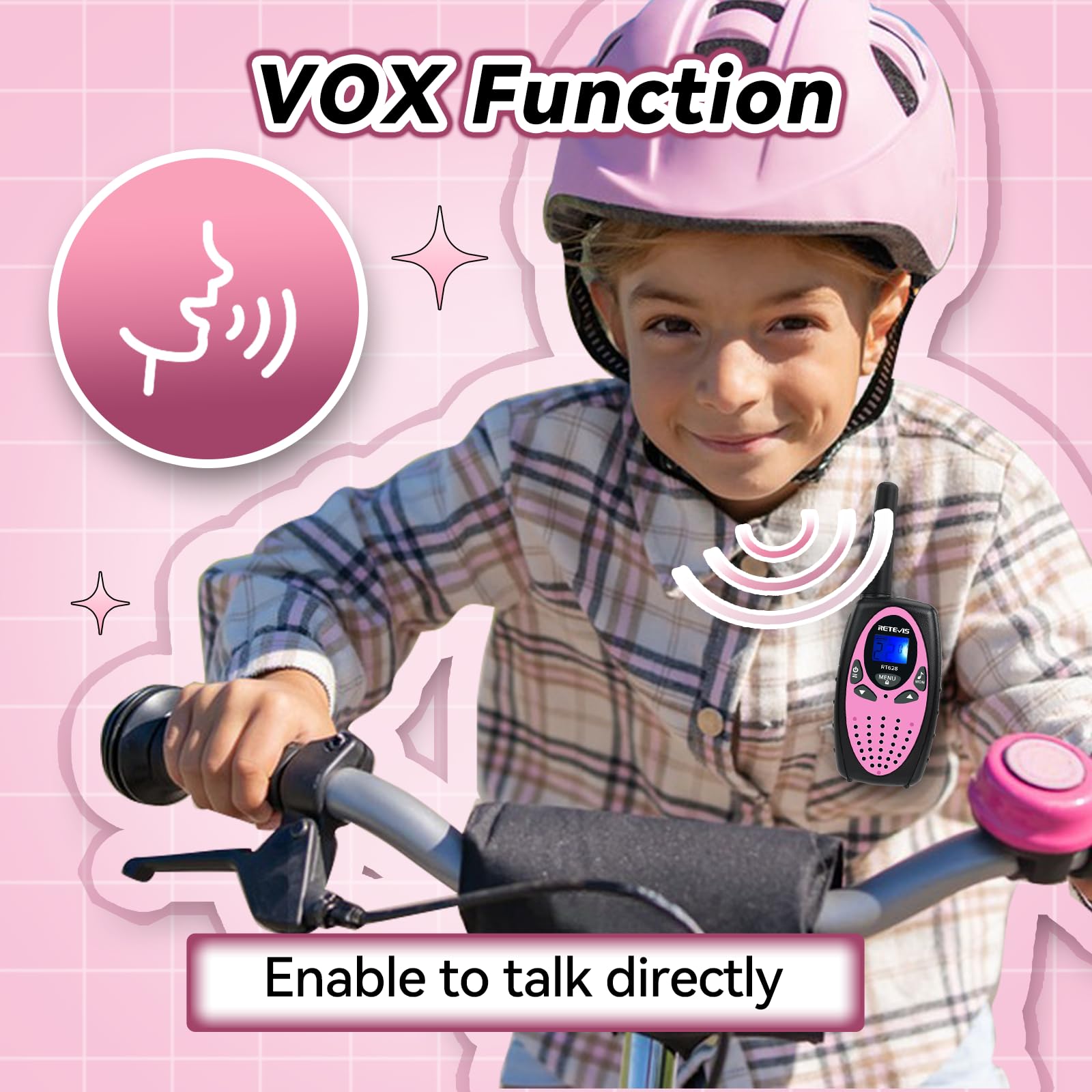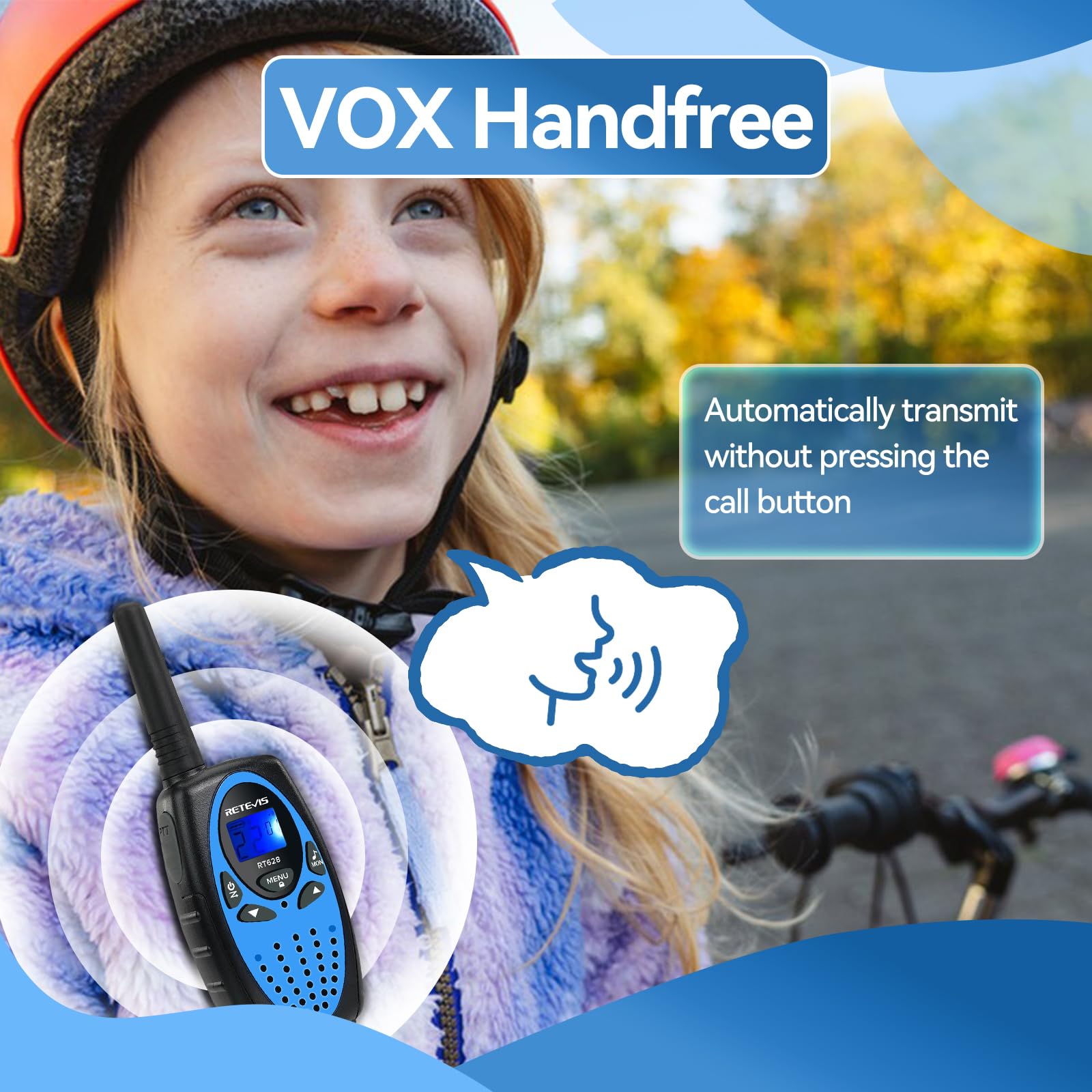 - VOX hands-free calls with clear sound quality; VOX mode of kids walkie talkies allows children to chat handsfree without pressing buttons - just talk