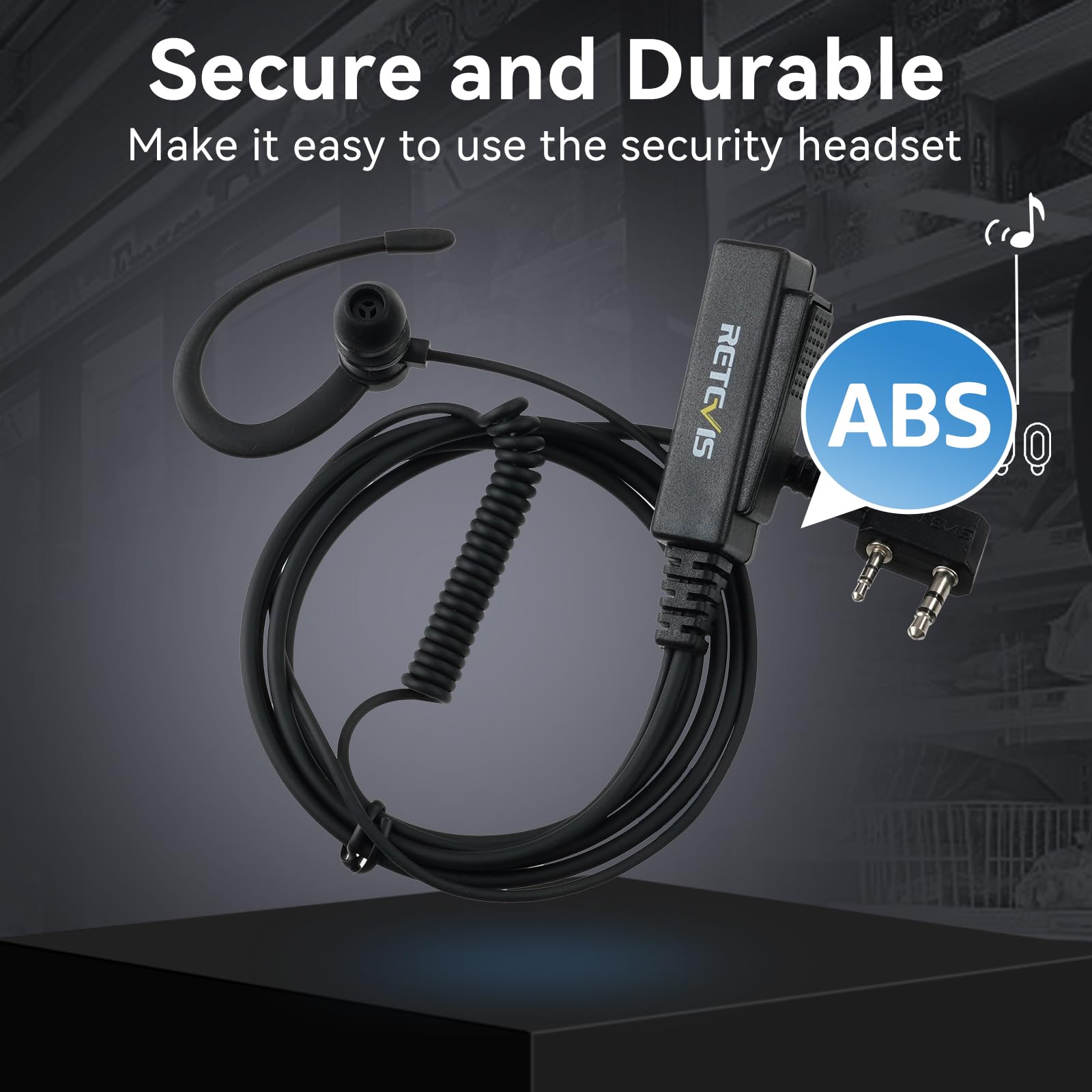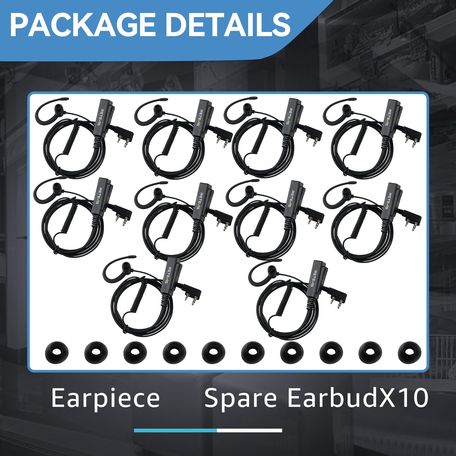 Retevis Walkie Talkie Earpiece with Mic,Volume Adjust,G Shape, for RT22 RT68 RT21 H-777 H-777S RT86,Compatible with Baofeng UV-5R 888S pxton Kenwood Two Way Radios,2 Way Radio Earpiece 2 Pin(10 Pack)