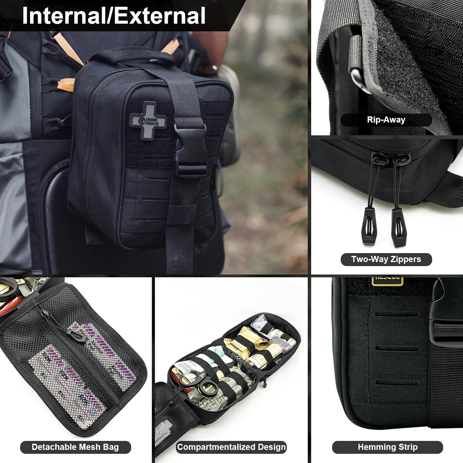 - [Emergency Medical Treatment] IFAK well-built for emergencies during the military, hunting, camping, travel, disaster, and accident. It comes with two non-vented chest seals, tourniquet, sterile gauzes, emergency blanket for most possible emergency situations