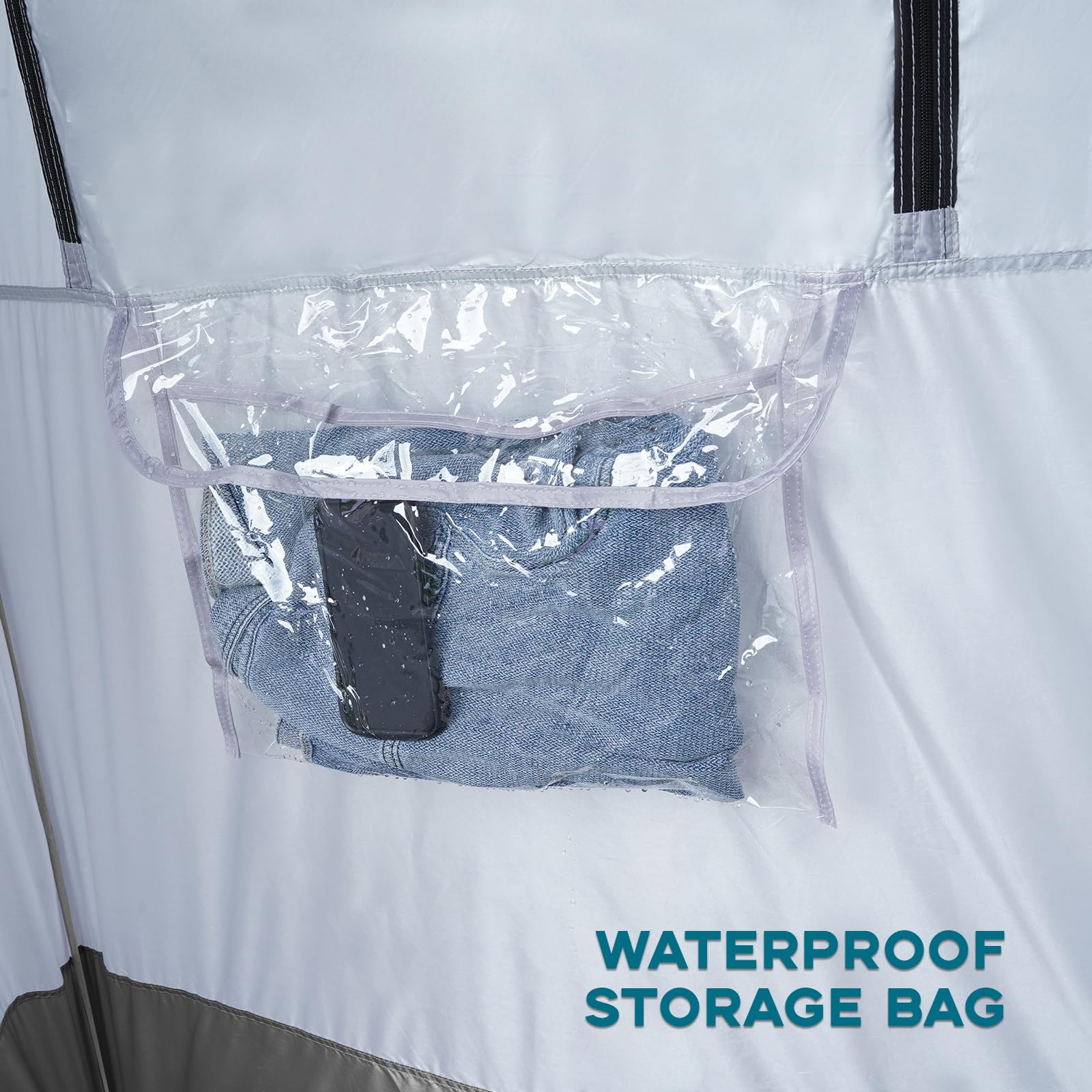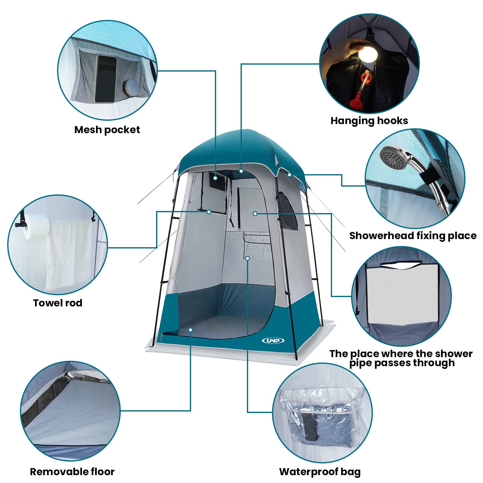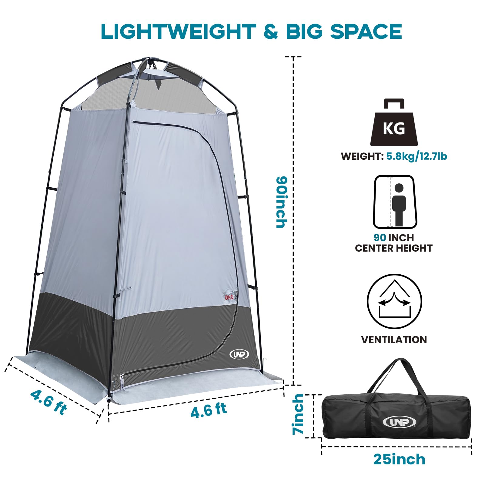 - PROTECTING PRIVACY:This shower tent is made of 210D high quality silver coating materials, UPF 50+ UV protection, and with removable rainfly ensure rainproof. Light-proof materials ensure no shadows to protect your privacy