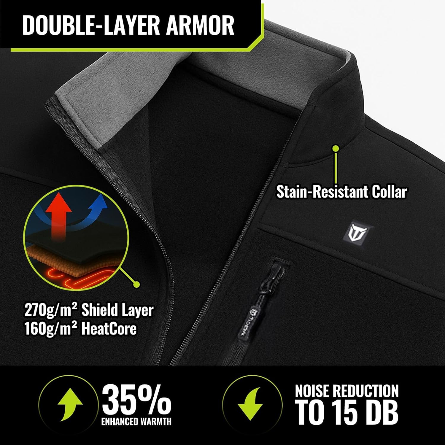 - 【Warm & Comfortable Fleece】TIDEWE heated jacket features upgraded 270GSM outer polar fleece + 160GSM inner thermal layer, delivering 35% enhanced heat retention. Collar adopts stain-resistant mercerized fleece for hypoallergenic comfort, with noise reduction below 15dB for silent movement.