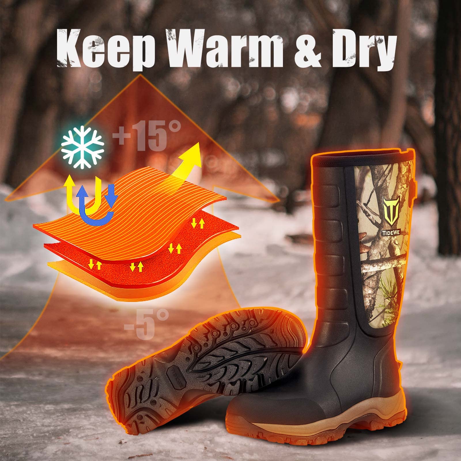 - 【Waterproof & Anti-Slip】 TIDEWE's hunting boots feature 5mm neoprene uppers and a natural rubber material creating an extra tough, 100% waterproof design. The deep tread integrated into the rubber soles, provides non-slip traction over the roughest terrain.