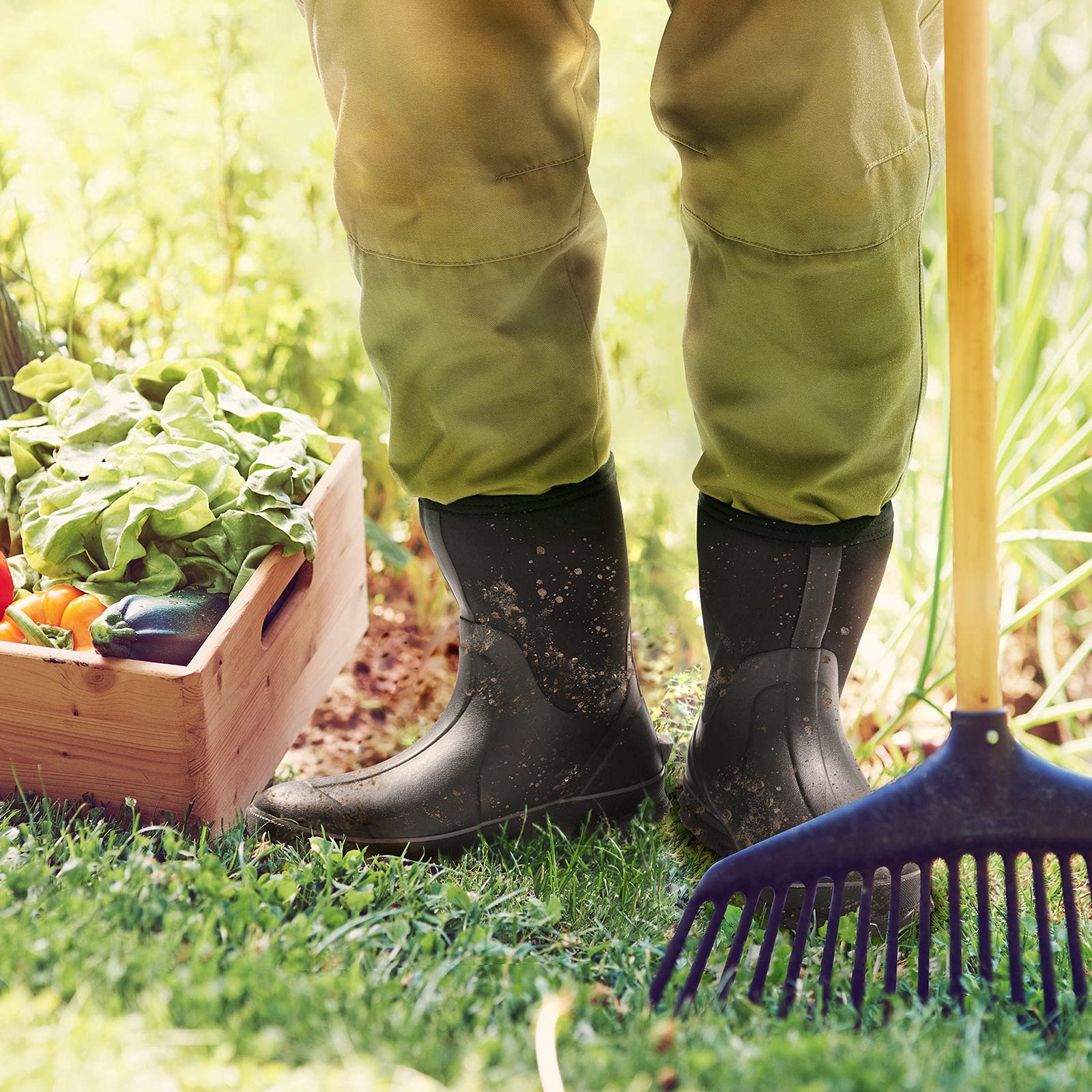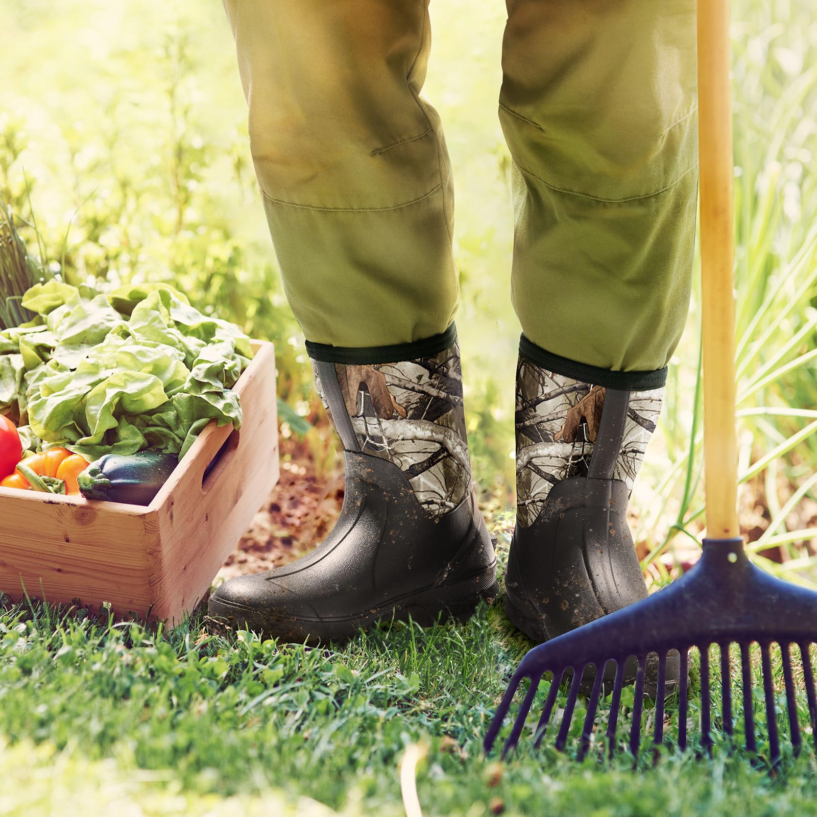 TIDEWE Rubber Boots for Men, 5.5mm Neoprene Insulated Rain Boots with Steel Shank, Waterproof Mid Calf Hunting Boots, Sturdy Rubber Work Boots for Farming Gardening Fishing