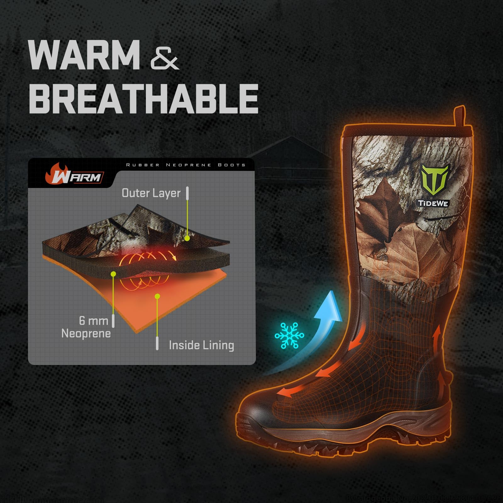 TIDEWE Rubber Neoprene Boots Men And Women, Waterproof Sturdy 6mm Neoprene Boot, Rain Boot Hunting Boot Arctic Outdoor Boot(Black, Brown & Next Camo G2)