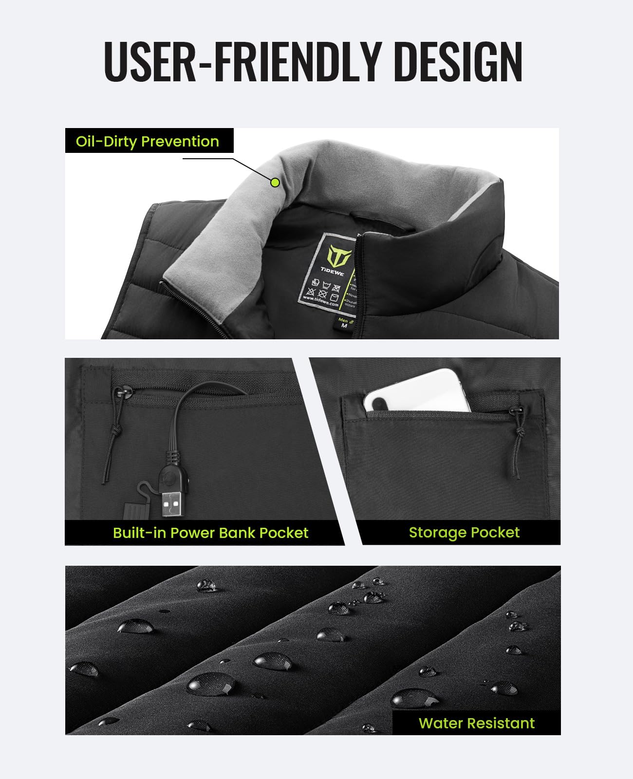 - 【High-Quality & Easy Care】 High quality polyester delivers incredible durability. 100% fleece offers you warmth and comfort. TideWe heated vest is designed to endure more than 50 times machine washing. Air-drying is suggested to protect heating elements better.