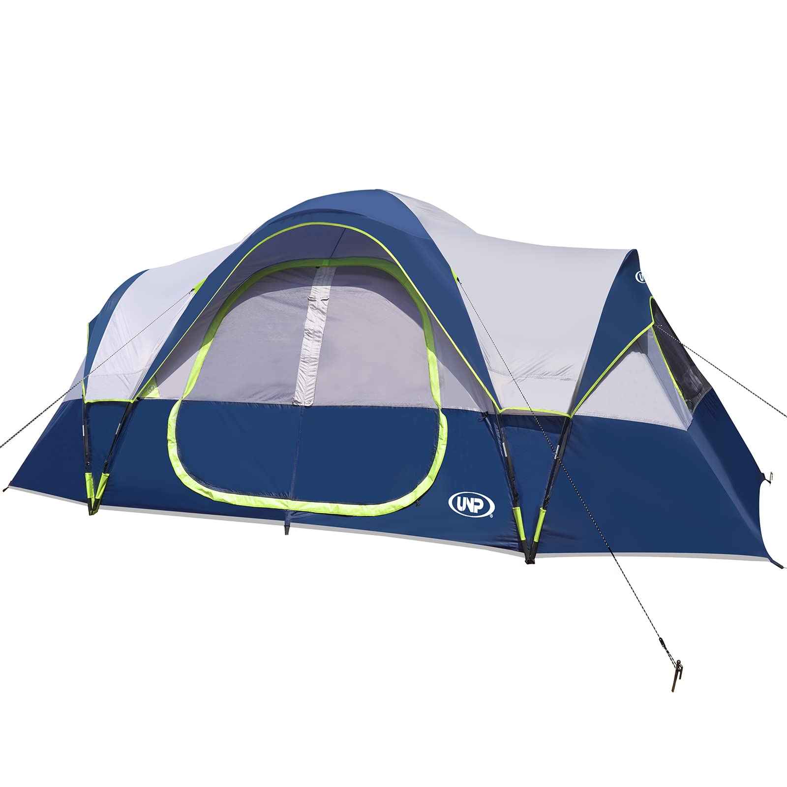 UNP Camping Tent 10-Person-Family Tents, Parties, Music Festival Tent, Big, Easy Up, 5 Large Mesh Windows, Double Layer, 2 Room, Waterproof, Weather Resistant, 18ft x 9ft x78in