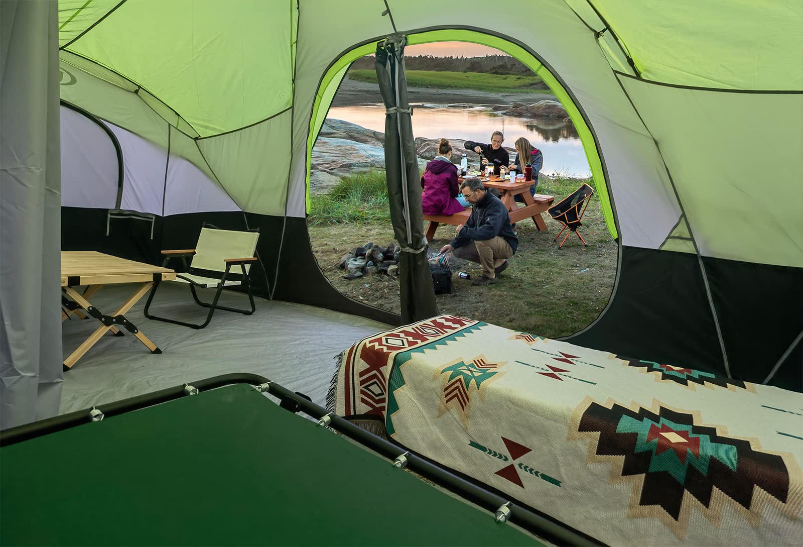 - Spacious for 10 Person: Unique 18 ft x 9 ft x78 in, well fitting 10 sleeping bags or 3 queen air mattress, ideal for family camping